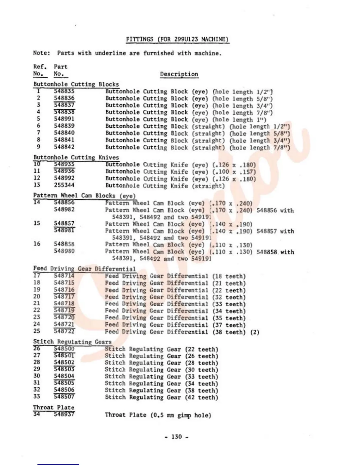 furnished with machine.