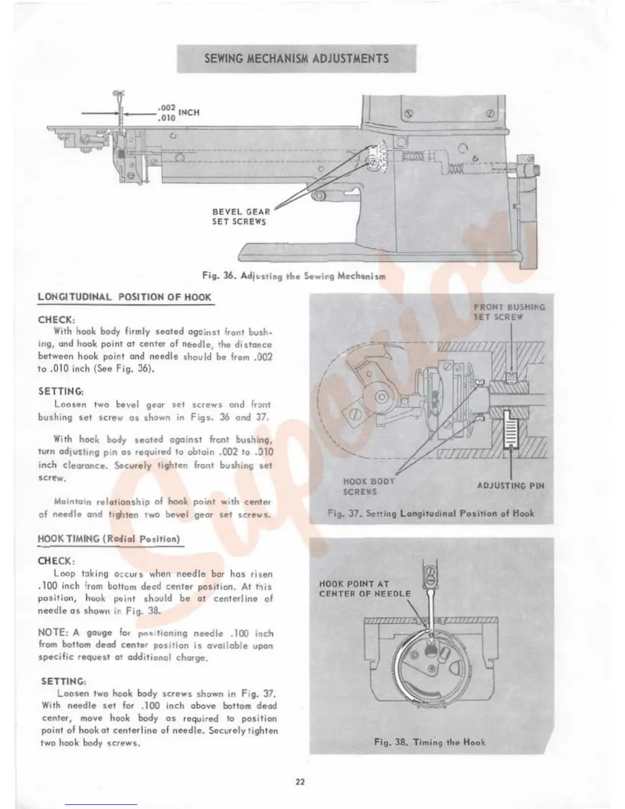 Singer 270 - Singer Service Manual Sewing Mechanism Adjustments; LONGITUDINAL POSITION OF HOOK; HOOK TIMING (Radial Position)