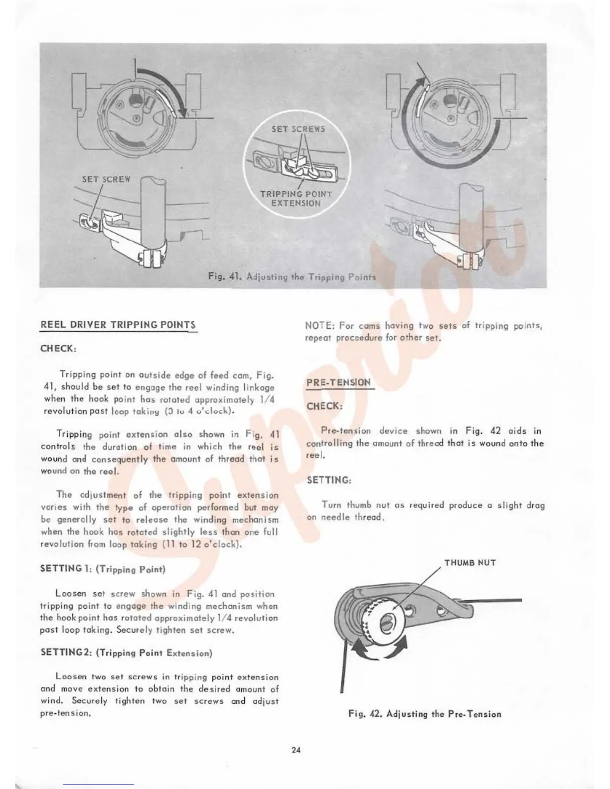 Singer 270 - Singer Service Manual Reel Driver Tripping Points; Singer Service Manual Pre-Tension Adjustment