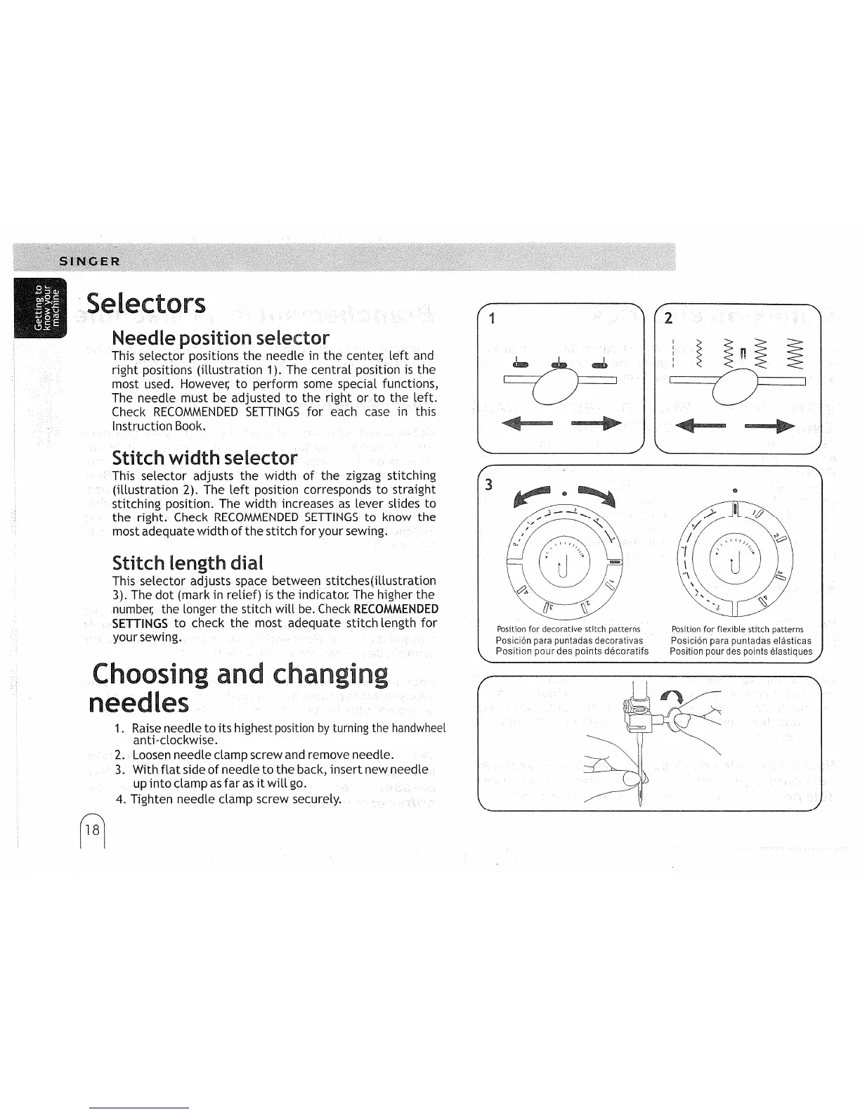 Singer 2732 - Selectors; Needle position selector; Stitch width selector; Stitch length dial