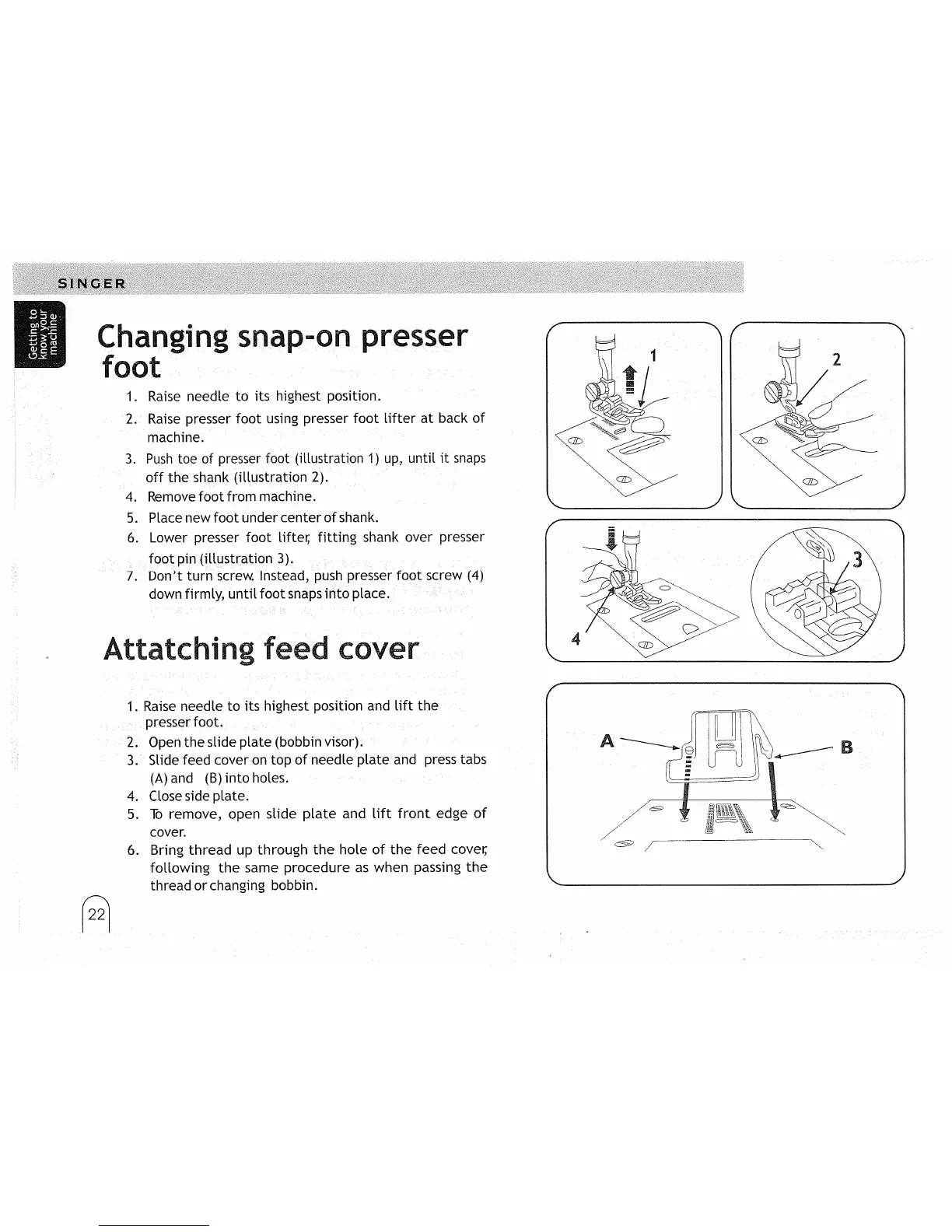 Singer 2732 - Changing Snap-On Presser Foot; Attaching Feed Cover