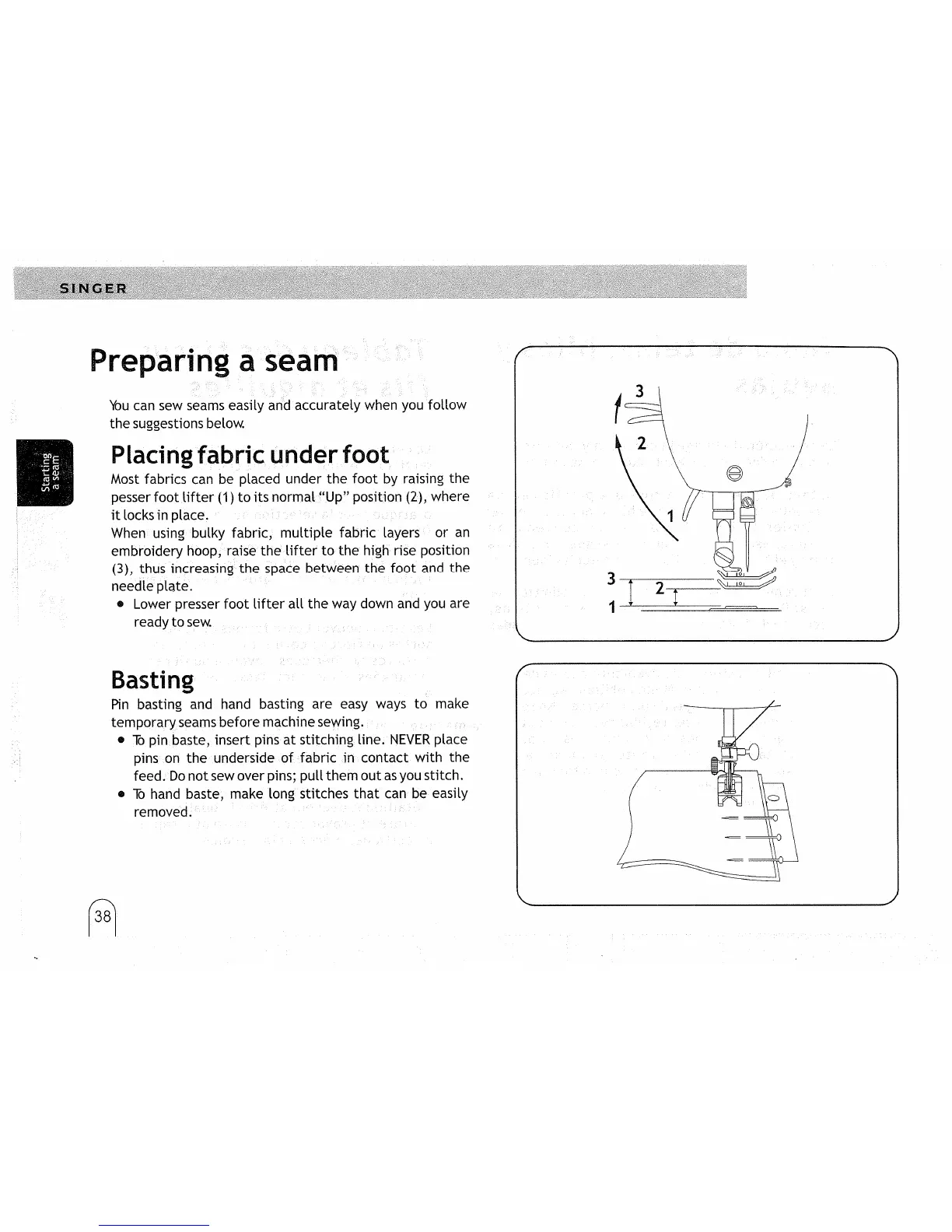 Singer 2732 - Preparing a Seam; Placing Fabric under Foot; Basting