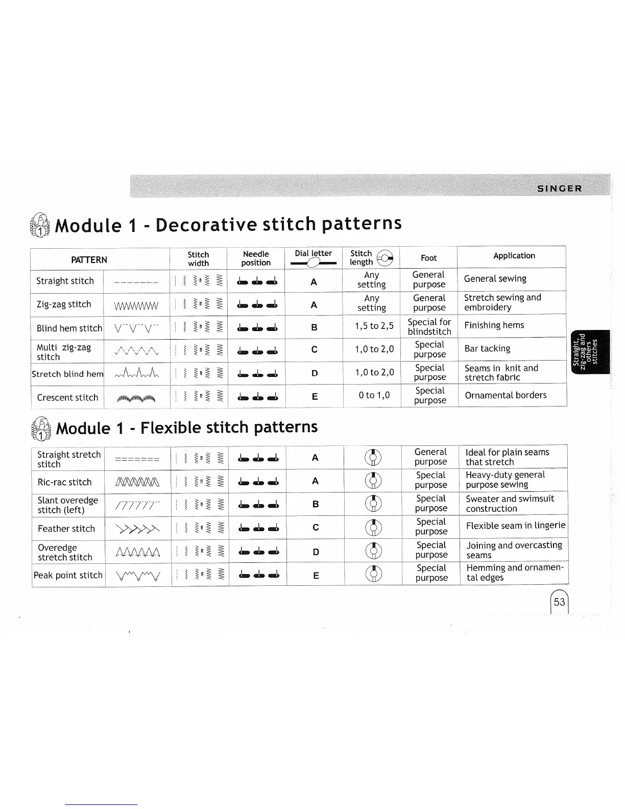 Singer 2732 - Decorative Stitch Patterns; Flexible Stitch Patterns Table
