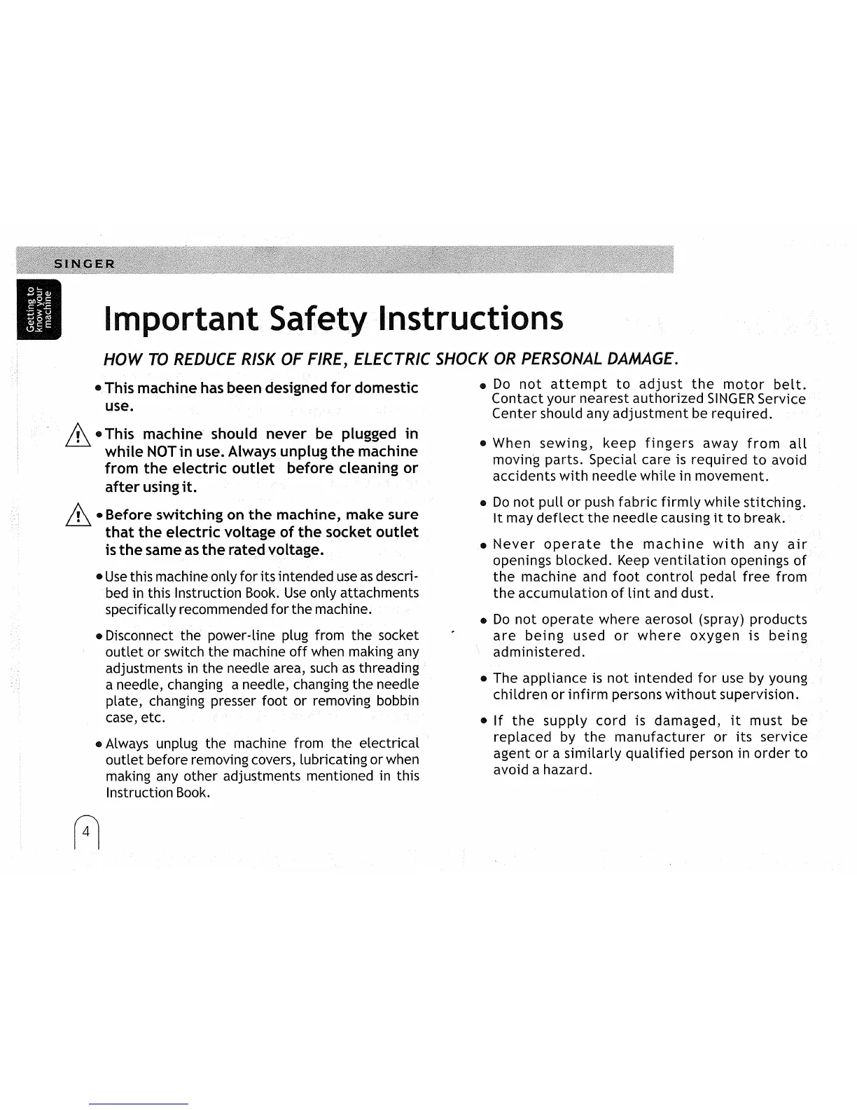Singer 2732 - Important Safety Instructions