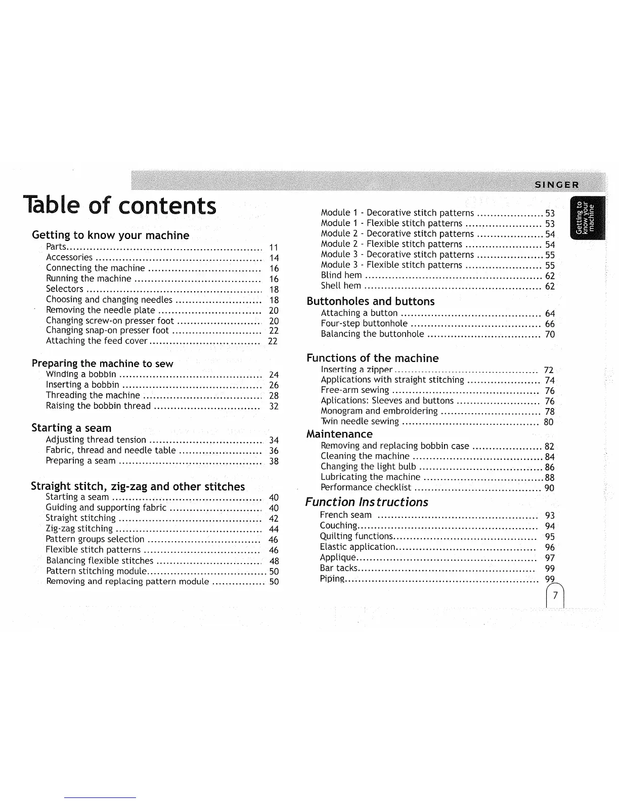 Singer 2732 - Table of Contents