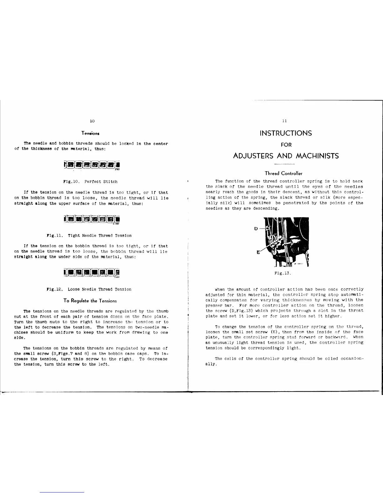 Singer 27W - Tensions; Regulating Tensions; Instructions for Adjusters and Machinists; Thread Controller Function and Adjustment