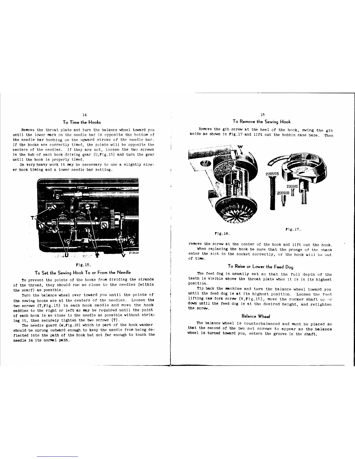 Singer 27W - Timing and Setting Machine Components; Timing the Hooks; Setting Sewing Hooks; Raising or Lowering Feed Dog