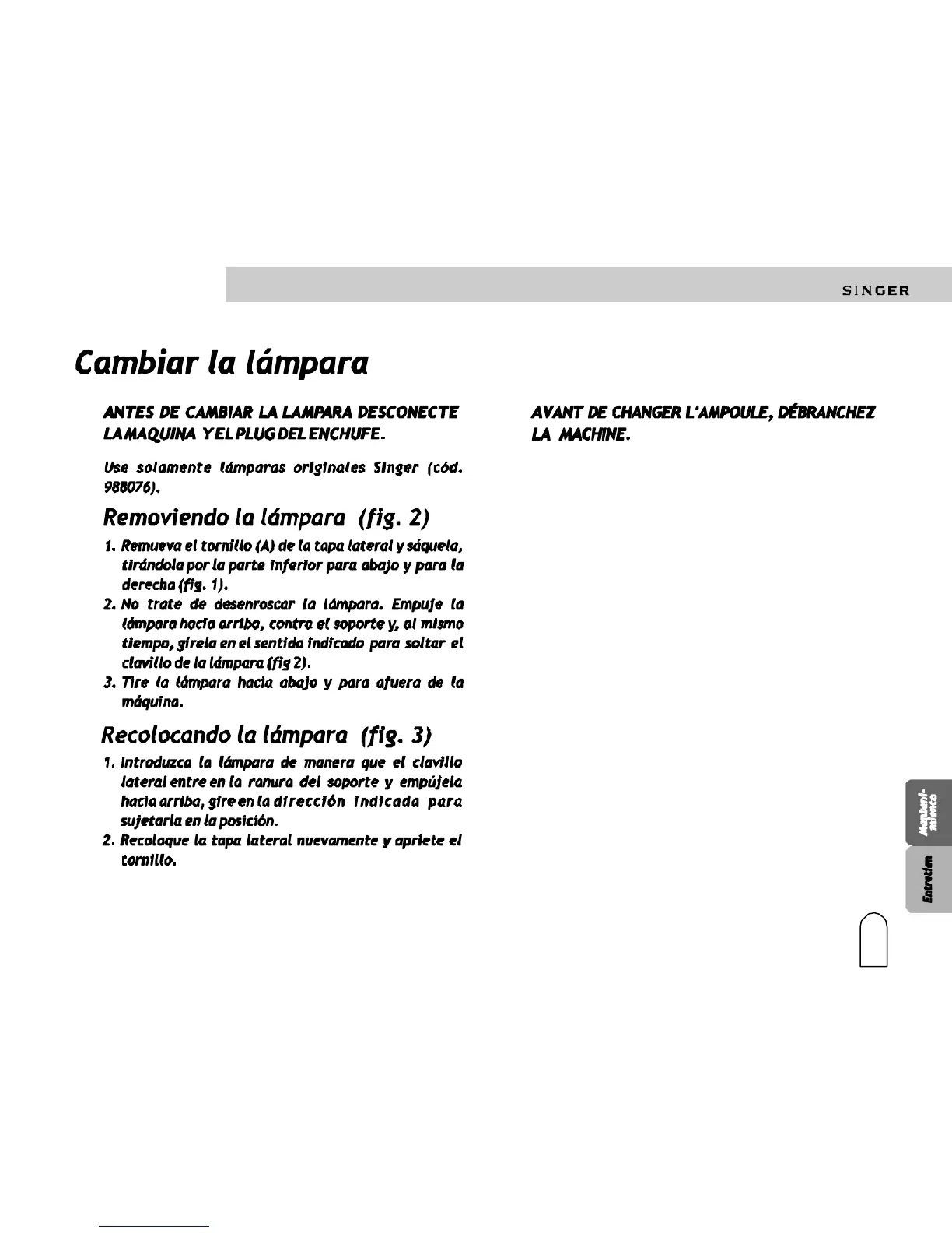 UtilisezseulementdeslampesoriginellesSinger(code