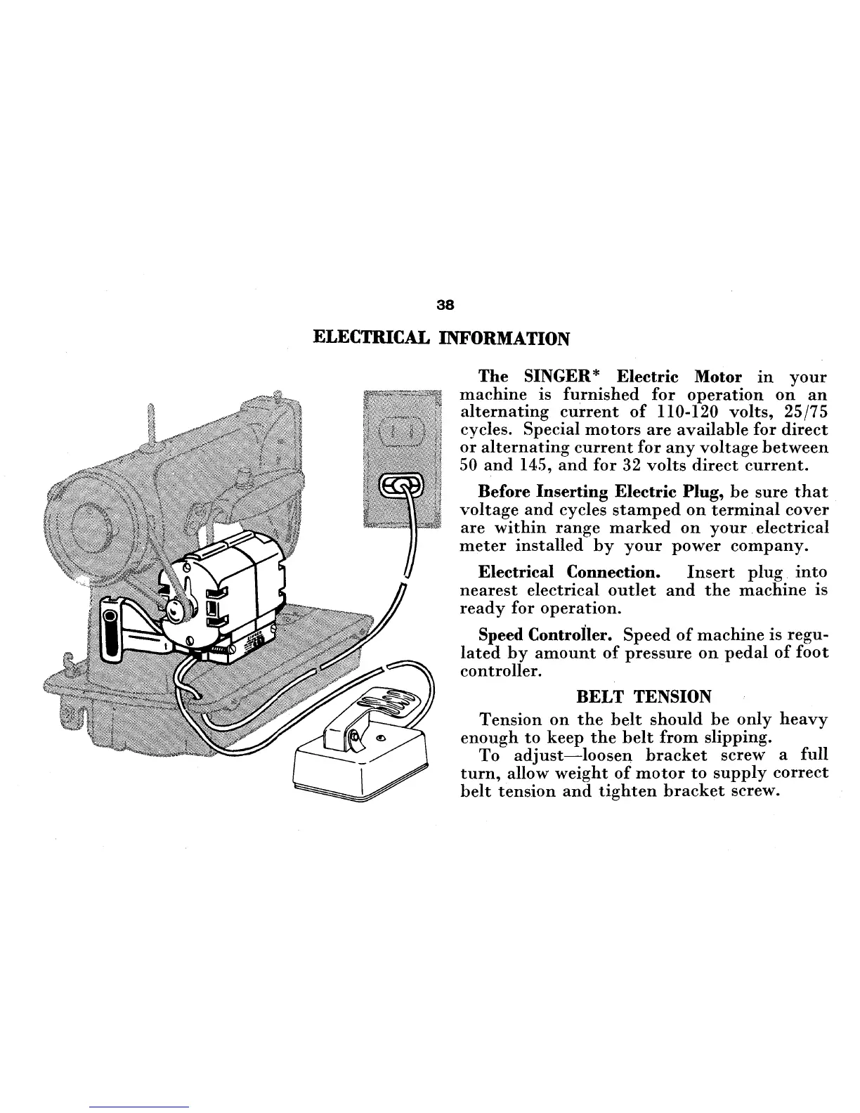 Singer 285K - Electrical Information; Belt Tension