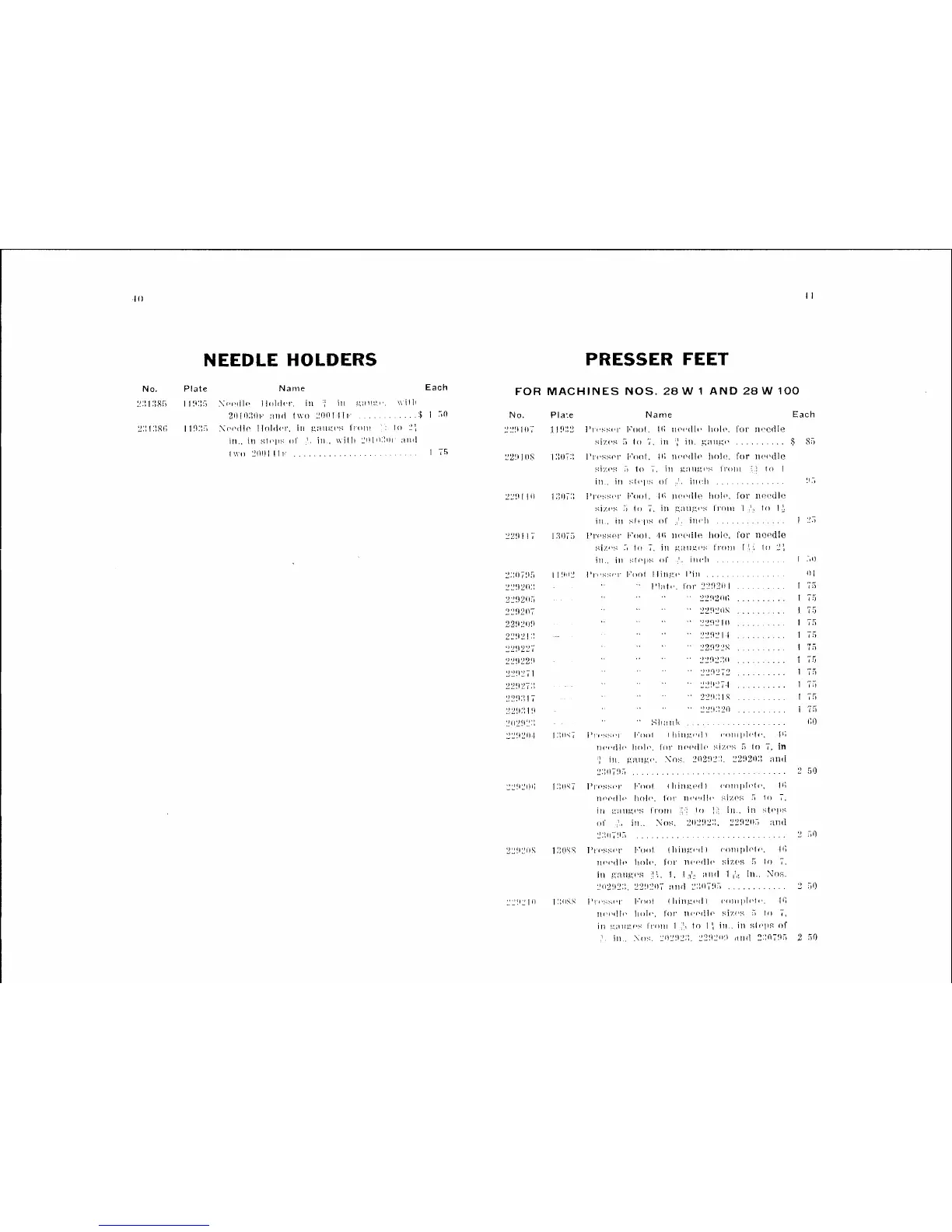 Singer 28W - NEEDLE HOLDERS; PRESSER FEET; FOR MACHINES NOS. 28 W 1 AND 28 W 100