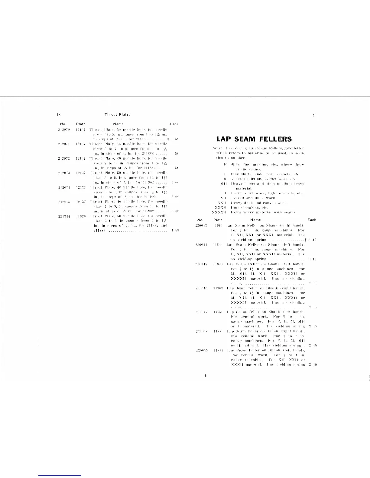 Singer 28W - LAP SEAM FELLERS; PRESSER FOLDERS