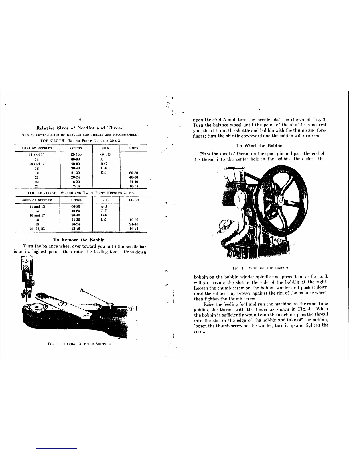 Singer 29-4 - Needle and Thread Size Chart; Bobbin Operations; To Remove the Bobbin