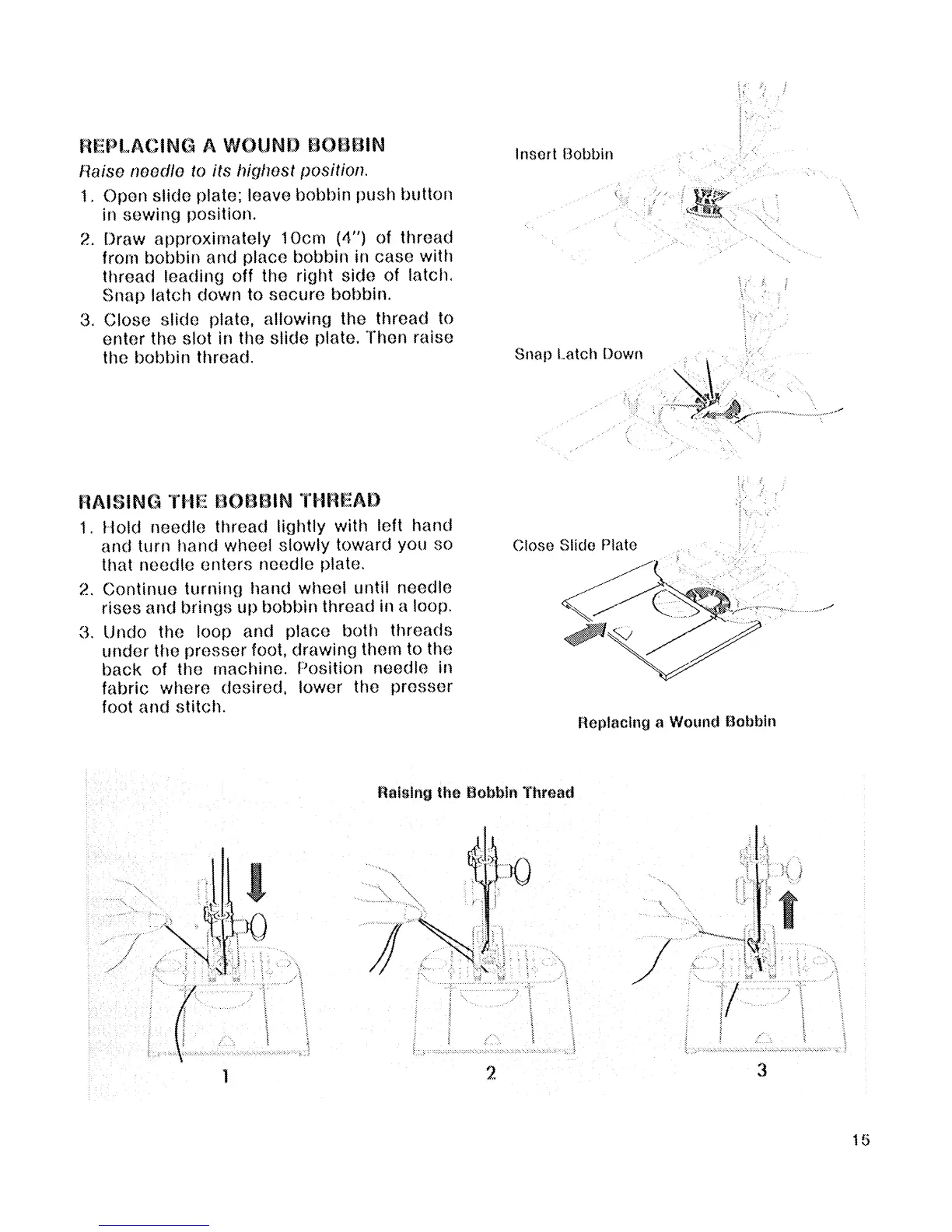 Singer 290 - Replacing a Wound Bobbin; Raising the Bobbin Thread