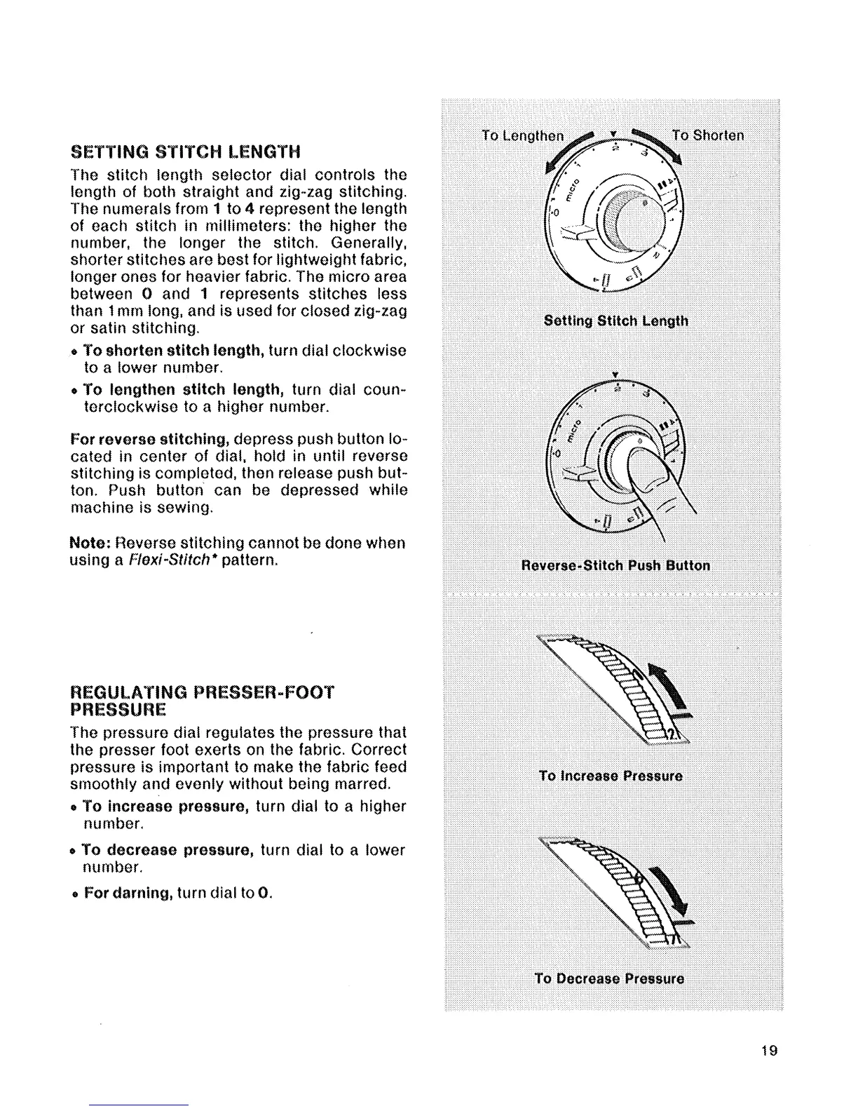 Singer 290 - Setting Stitch Length; Regulating Presser-Foot Pressure