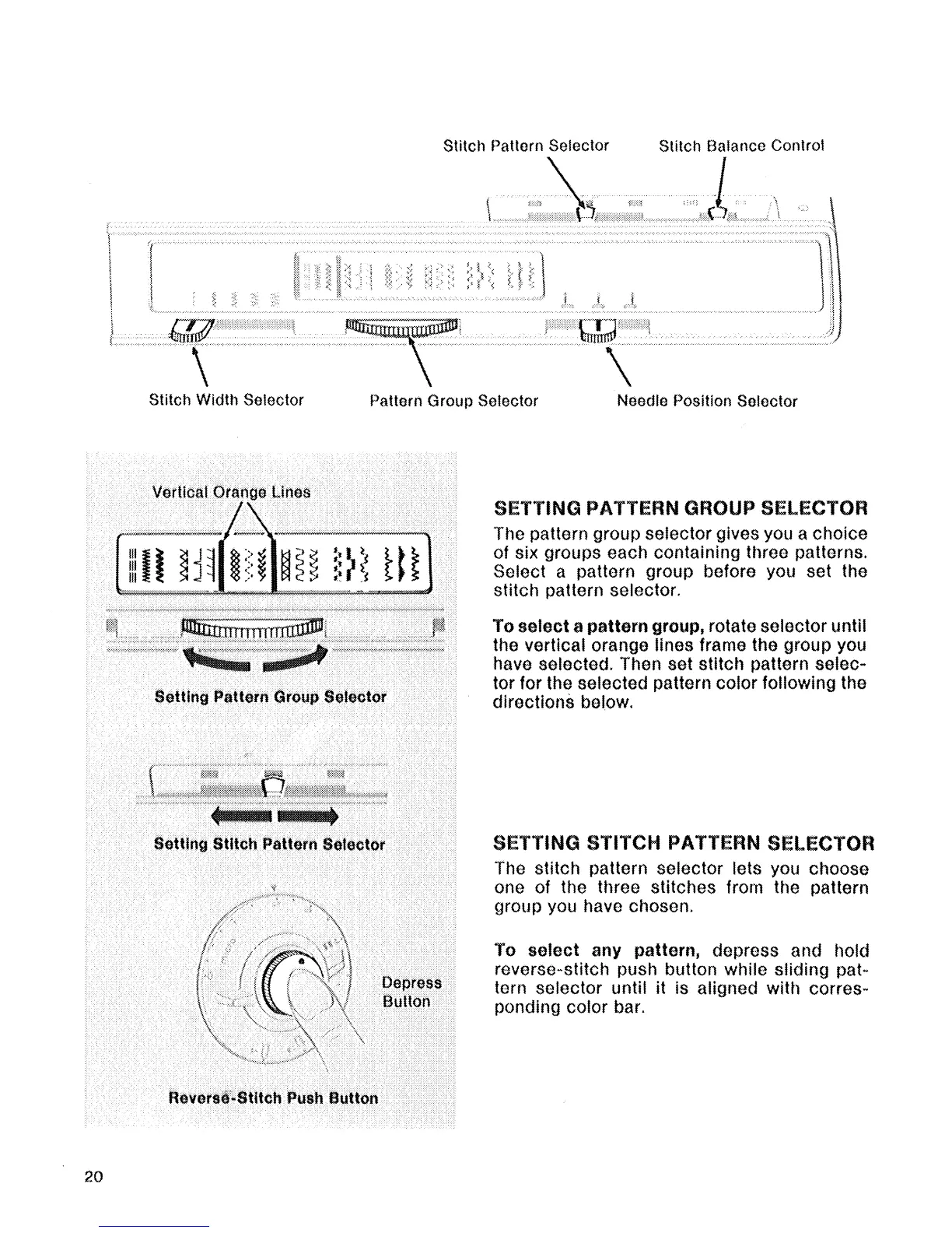 Singer 290 - Setting Pattern Group Selector; Setting Stitch Pattern Selector