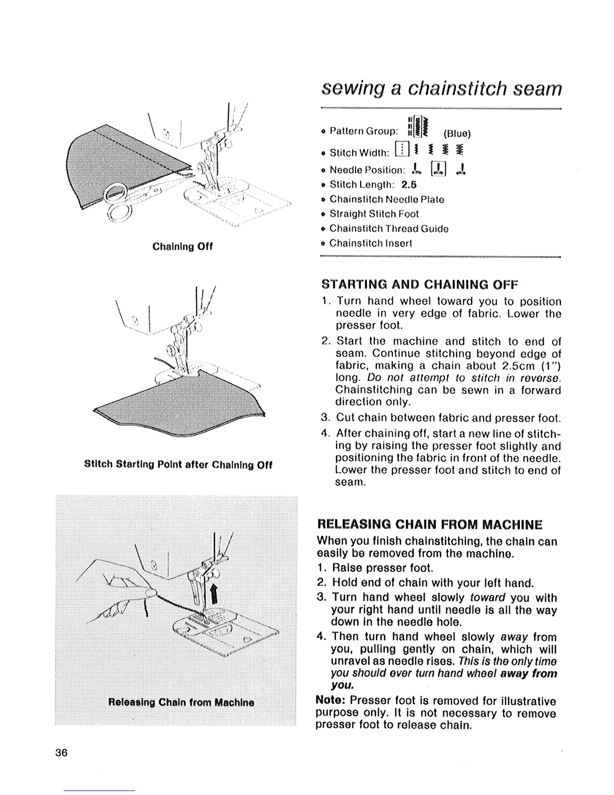 Singer 290 - Sewing a Chainstitch Seam: Starting and Chaining off; Sewing a Chainstitch Seam: Releasing Chain from Machine