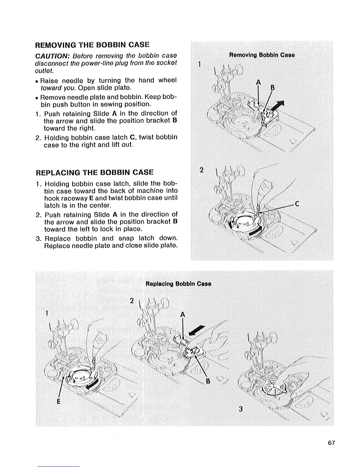 Singer 290 - Removing the Bobbin Case; Replacing the Bobbin Case