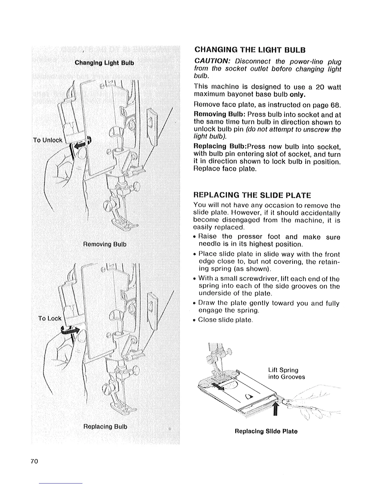 Singer 290 - Changing the Light Bulb; Replacing the Slide Plate