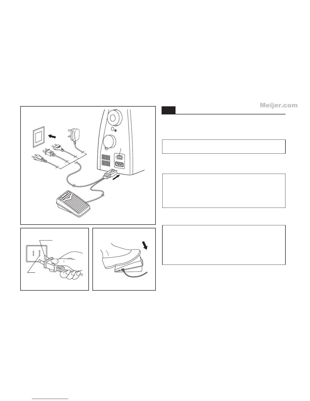 The foot control pedal regulates the sewing speed. (3)