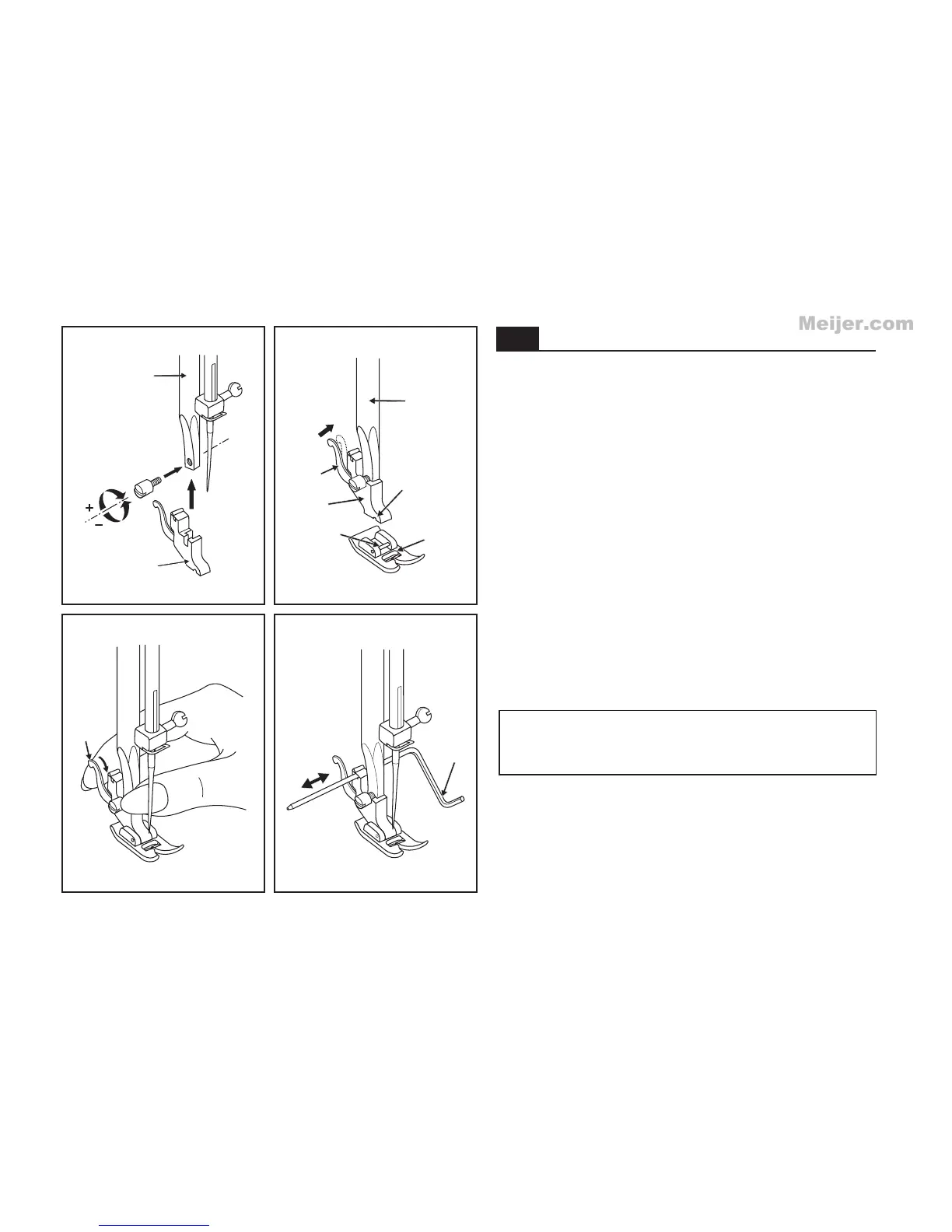 Raise the presser bar (a). Attach the presser foot shank (b) as