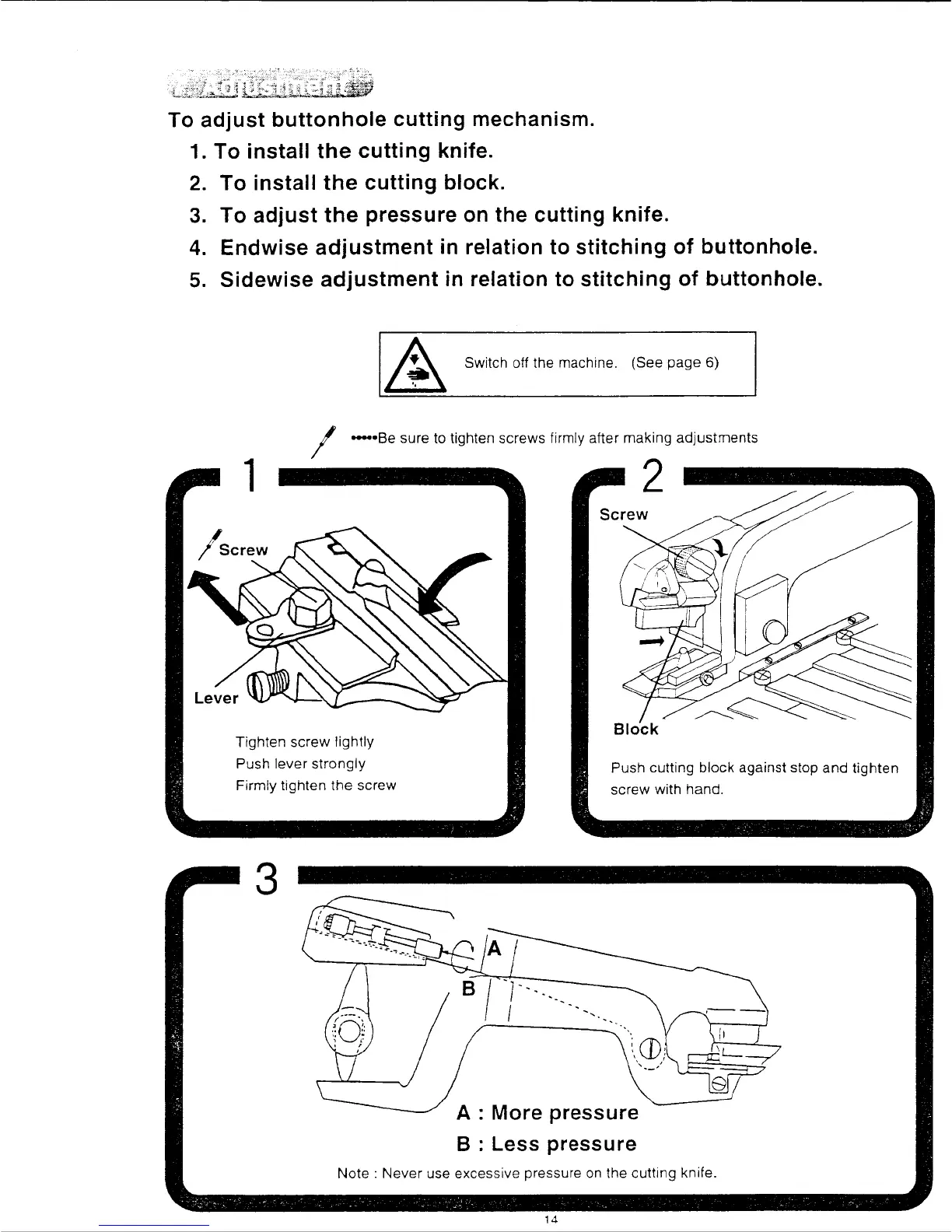 Singer 299U1350 - Cutting Mechanism Adjustment; Buttonhole Cutting Mechanism; Cutting Knife Pressure