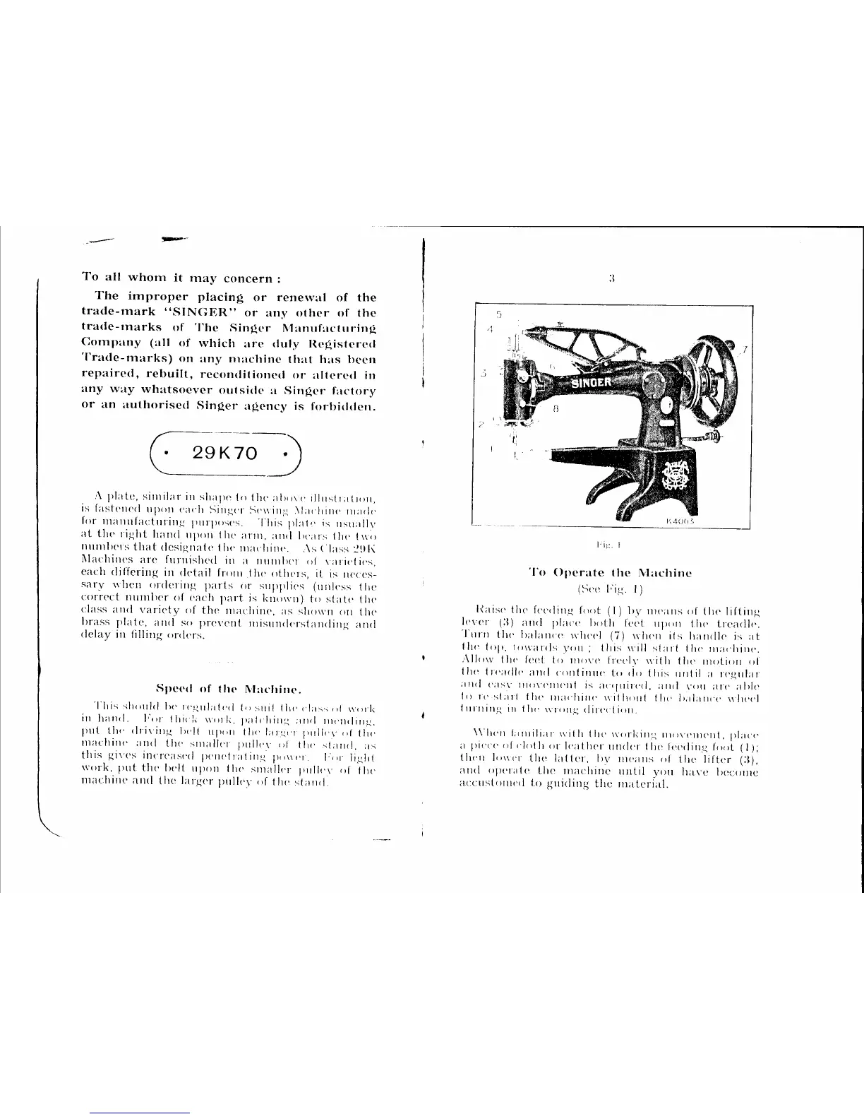 Singer 29K70 - Speed of the Machine; To Operate the Machine