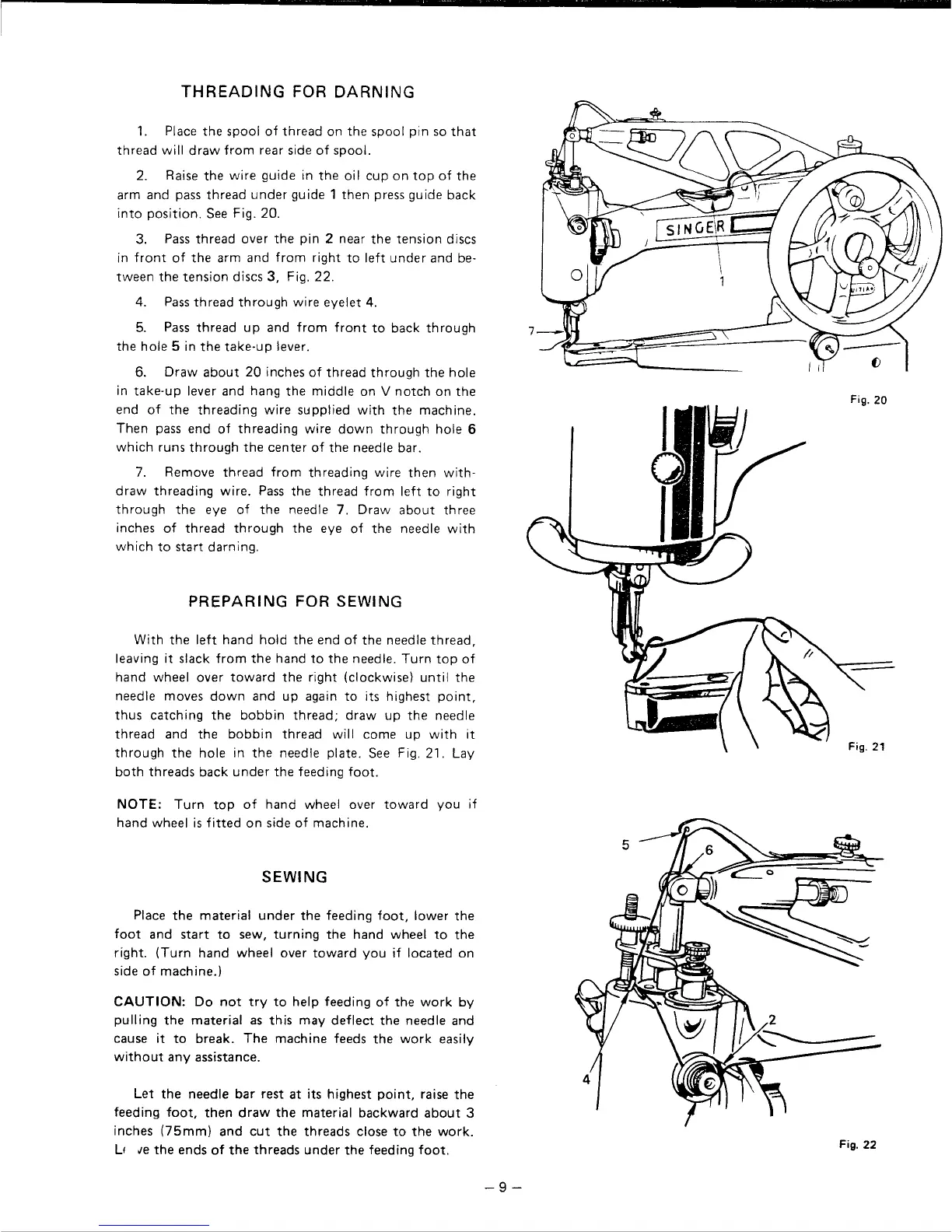 Singer 29U171A - Threading for Darning; Preparing for Sewing; Sewing