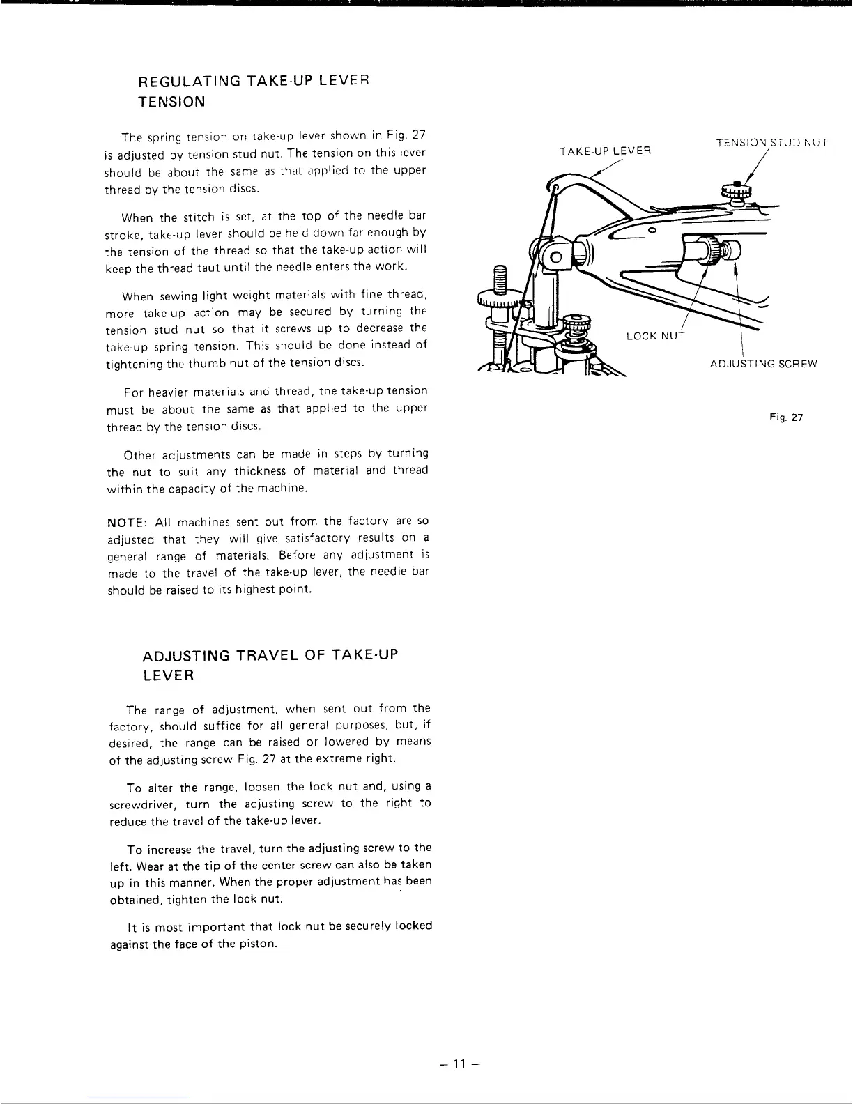 Singer 29U172A - TAKE-UP LEVER ADJUSTMENTS