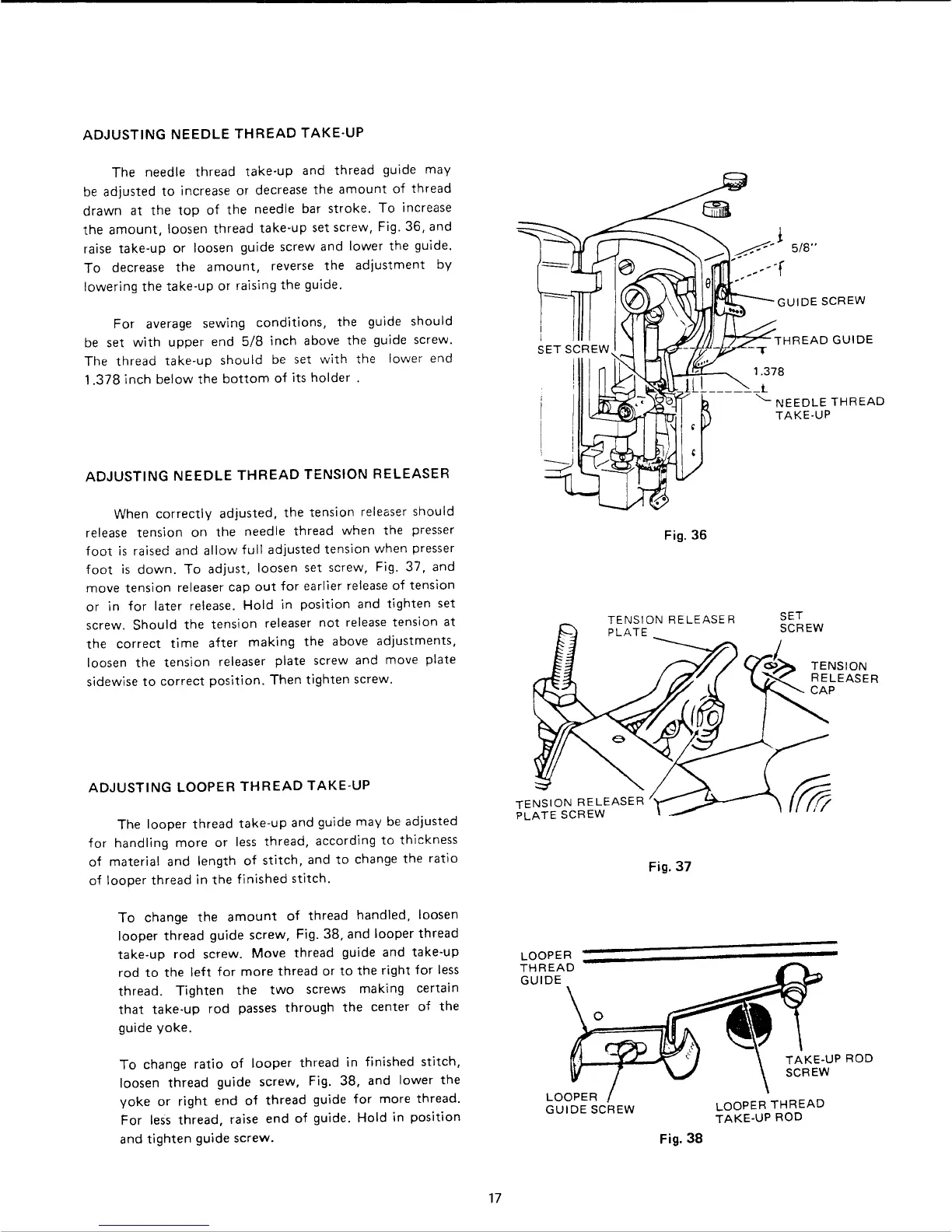 Singer 300U - Needle Thread Take-Up Adjustment; Needle Thread Tension Releaser Adjustment; Looper Thread Take-Up Adjustment