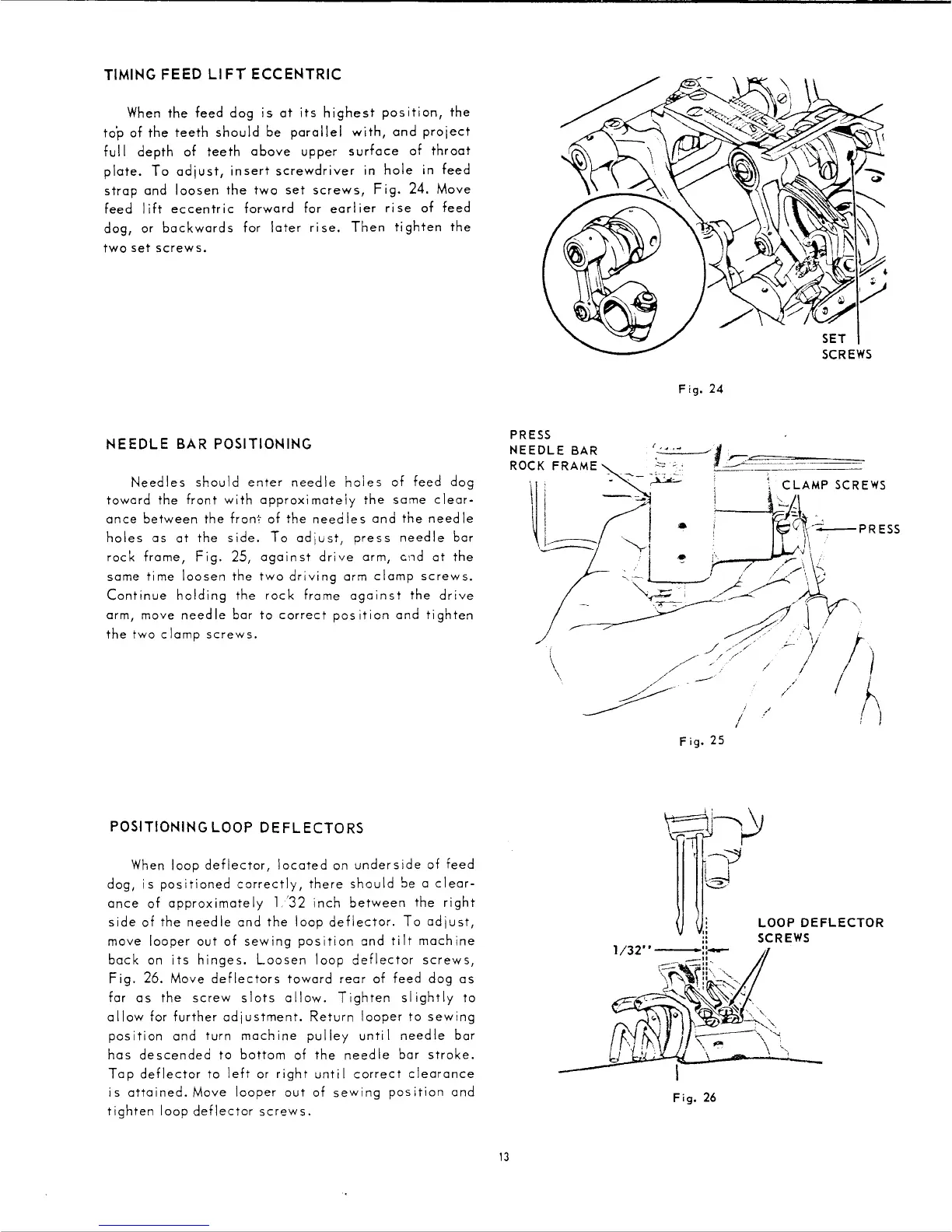 Singer 300W class - Feed and Needle Bar Timing; Timing Feed Lift Eccentric; Needle Bar Positioning; Loop Deflector Positioning