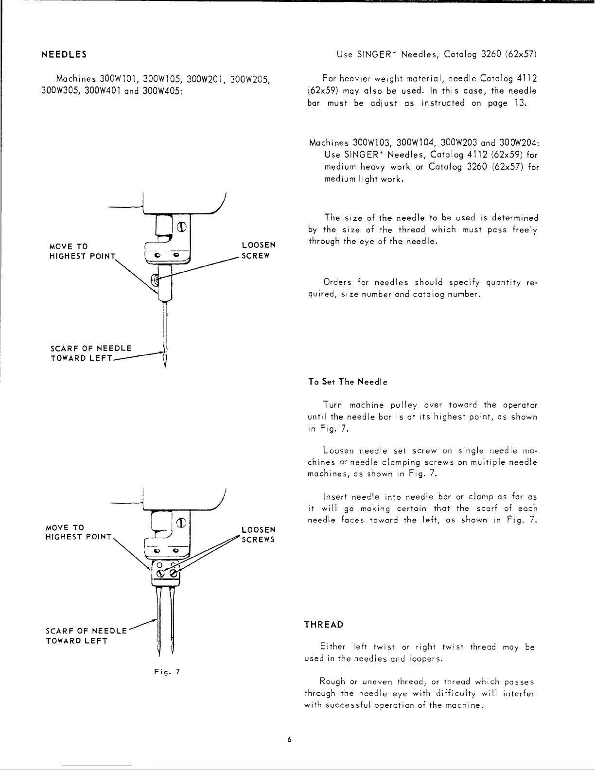 Singer 300W class - SINGER Sewing Machine Needles; Thread Selection for Needles