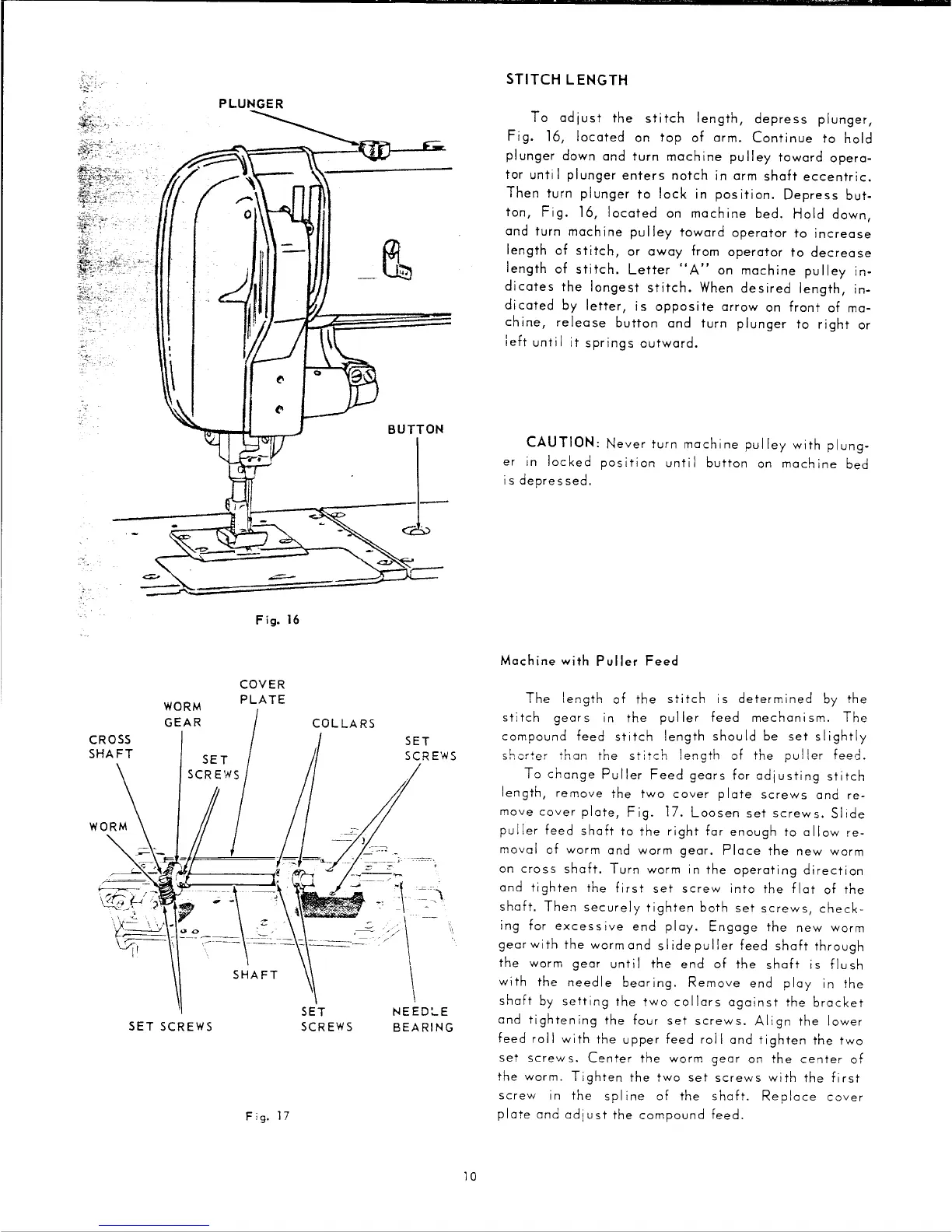 Singer 300W class - Stitch Length Adjustment; Adjusting Stitch Length with Puller Feed