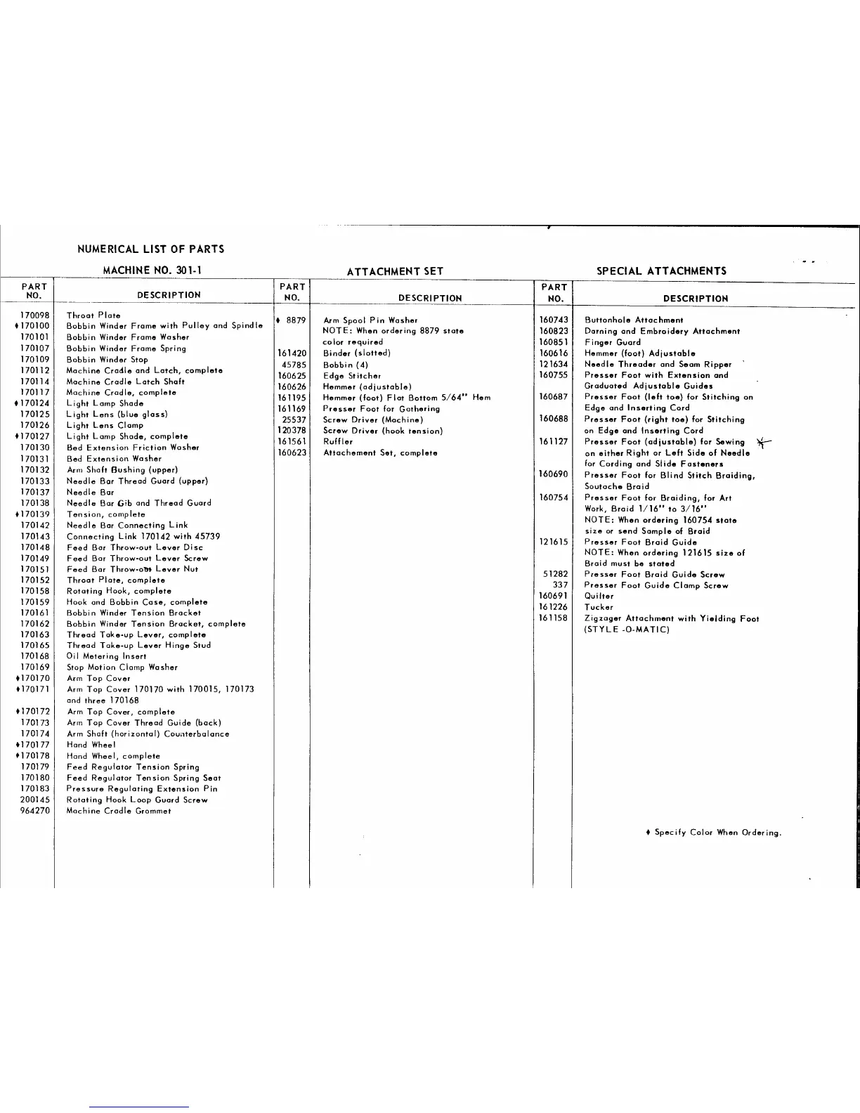 Singer 301-1 - Attachment Set Parts; Special Attachments Parts