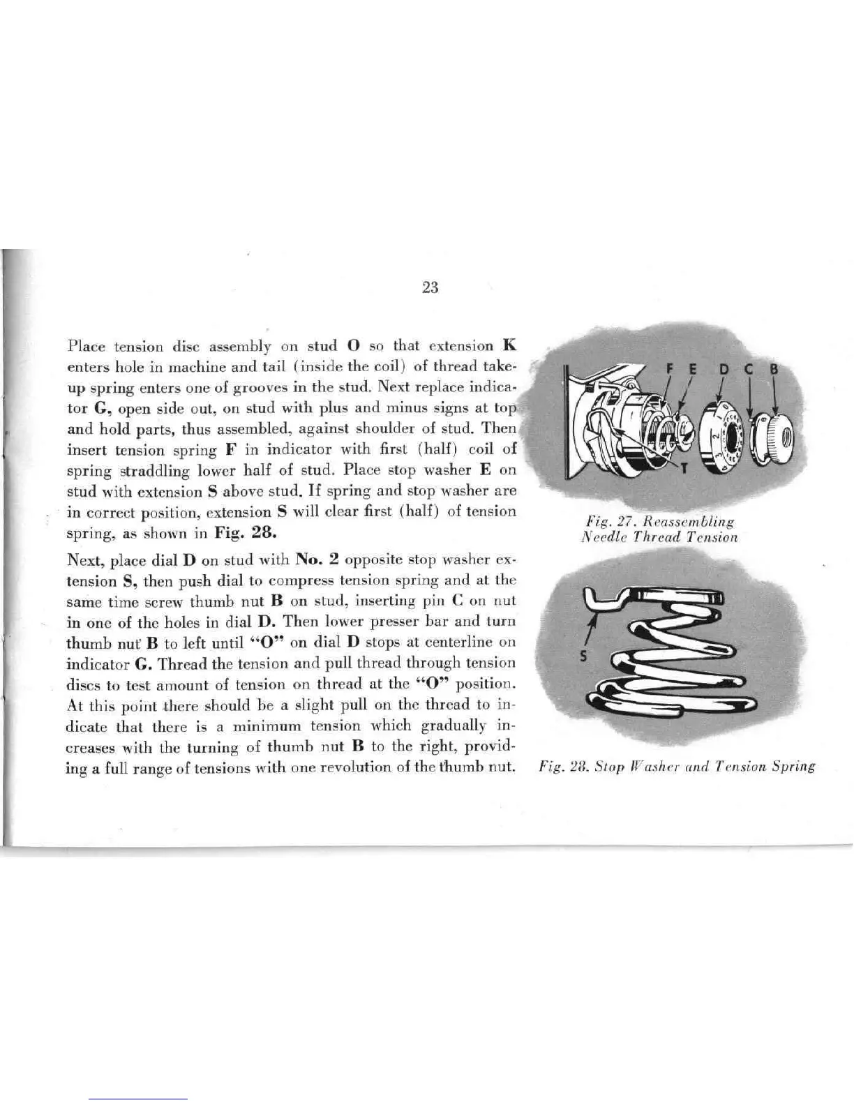 Singer 301 - Reassembling Needle Thread Tension; Stop Washer and Tension Spring