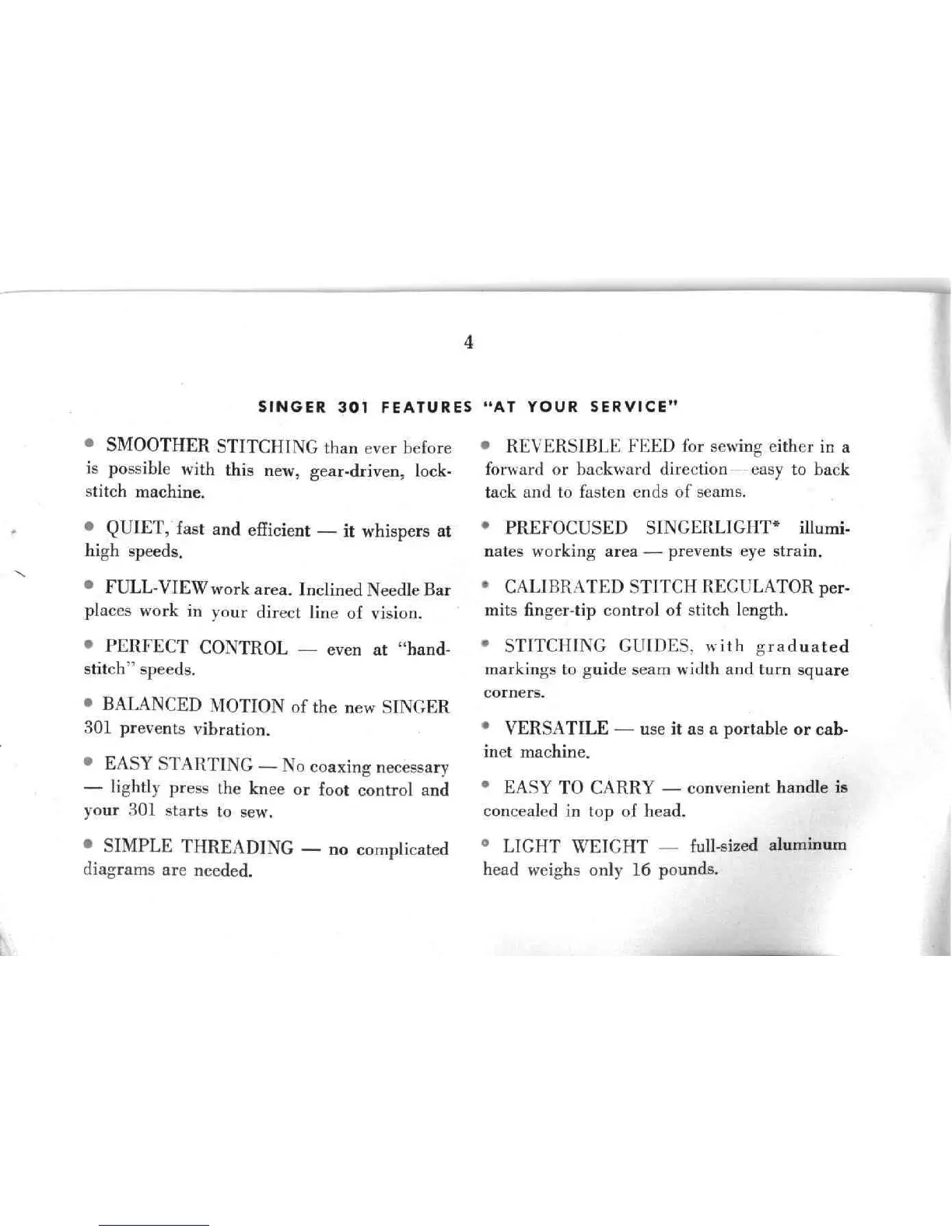 Singer 301 - ELECTRICAL CONNECTIONS FOR MACHINE; TO USE THE 301 AS A PORTABLE MACHINE