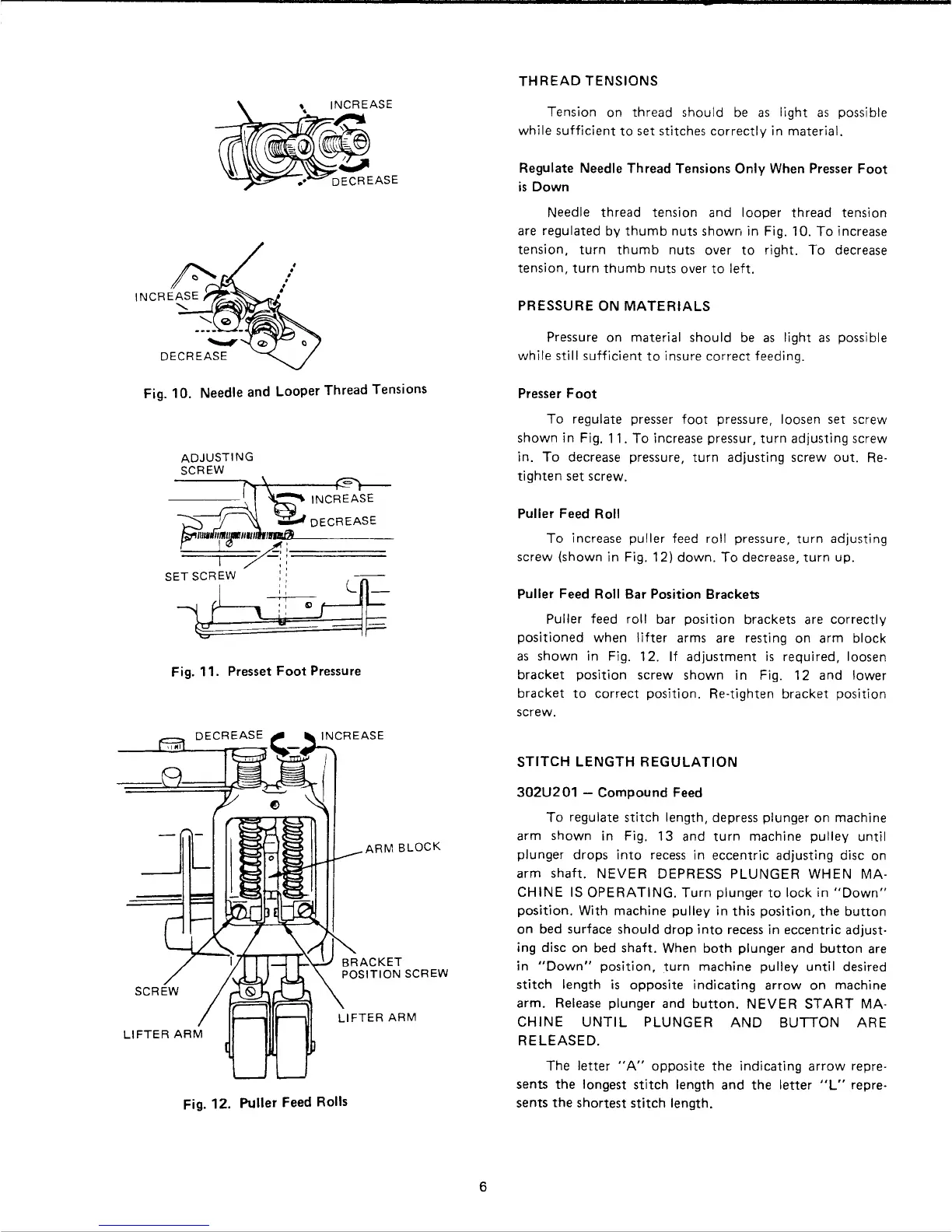 Singer 302U406 - Thread Tensions and Pressure; Thread Tension Adjustment; Presser Foot Pressure; Puller Feed Roll Pressure