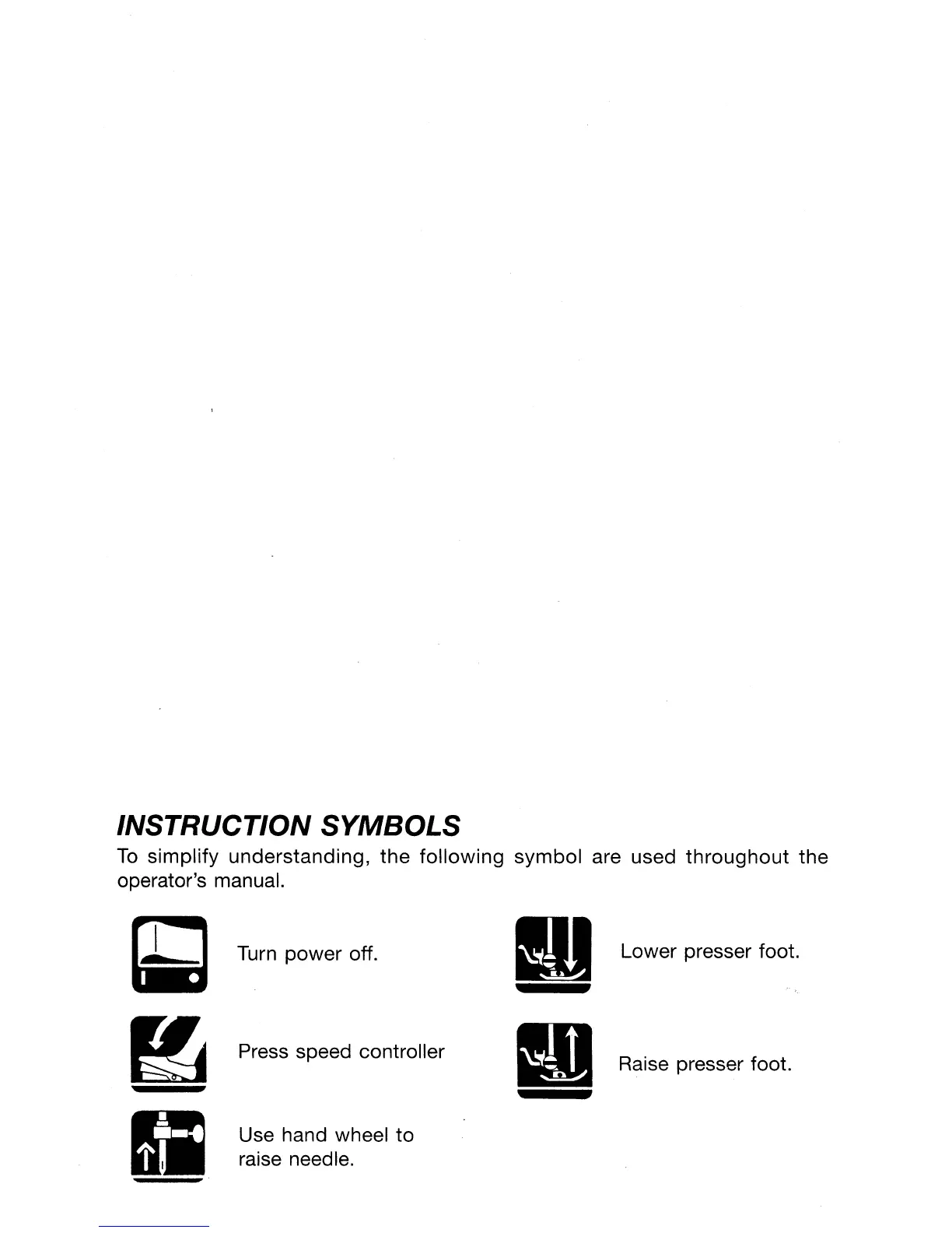 Singer 30518 - Instruction Symbols; Turn Power Off; Press Speed Controller; Use Hand Wheel to Raise Needle