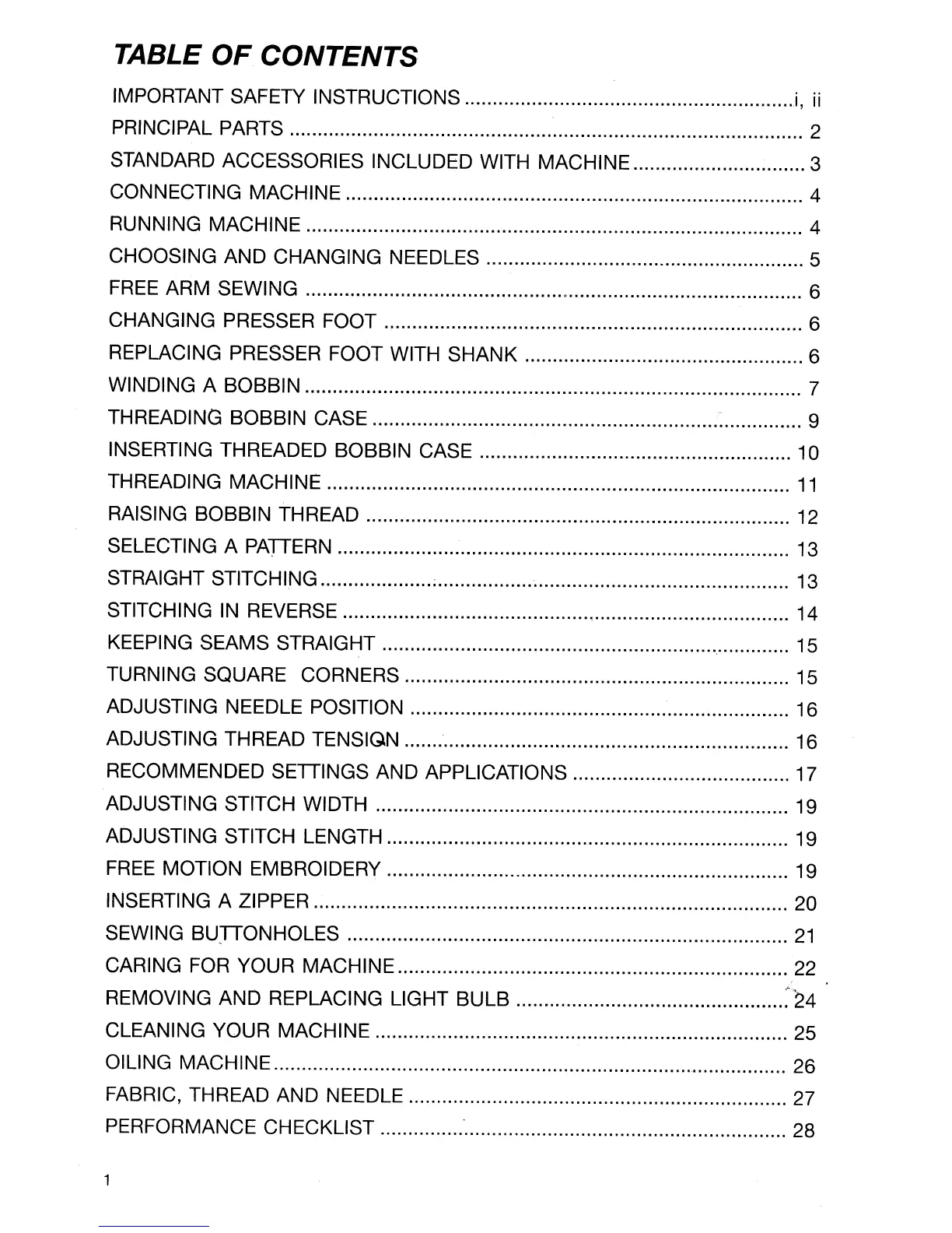 Singer 30518 - Table of Contents