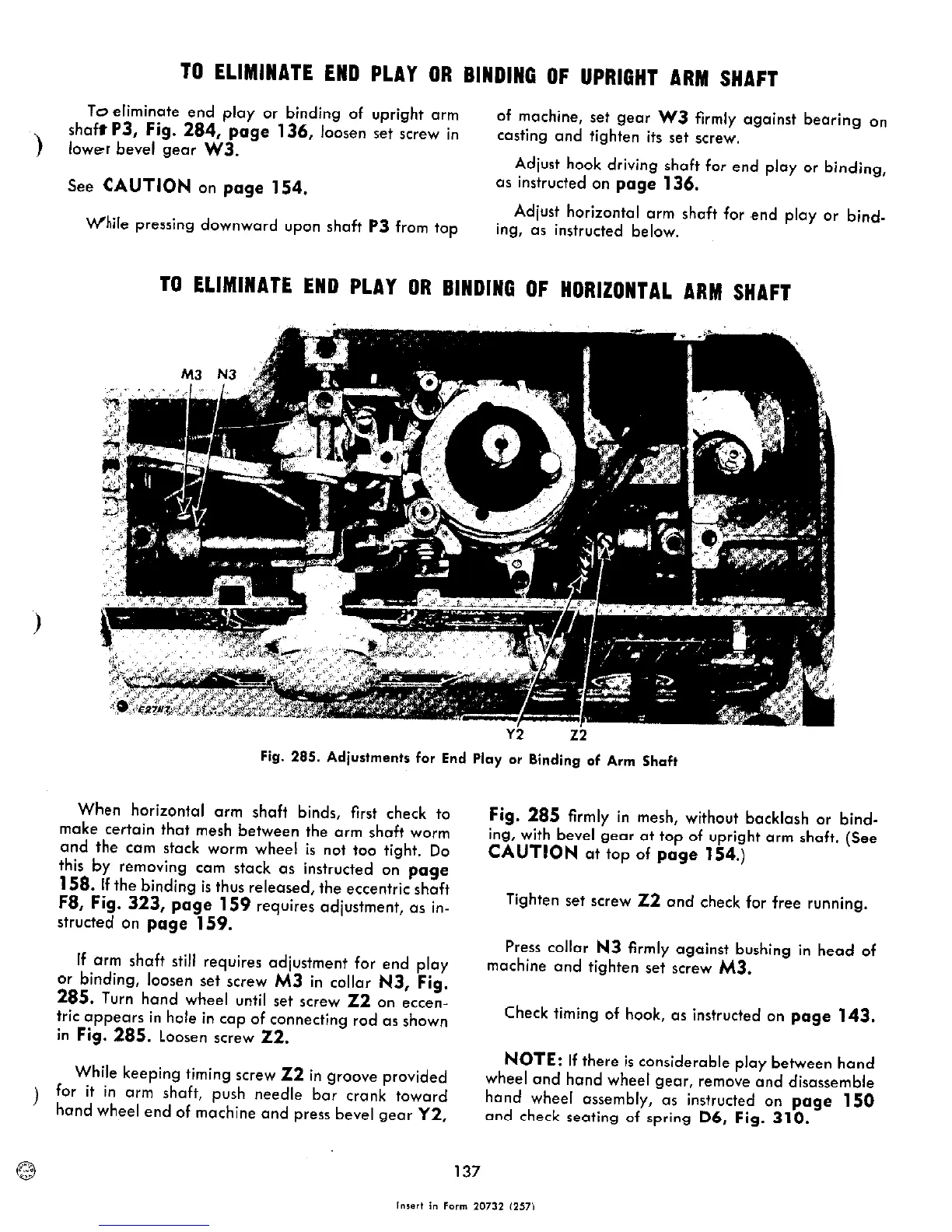 Singer 306 - To Eliminate End Play or Binding of Upright Arm Shaft; To Eliminate End Play or Binding of Horizontal Arm Shaft