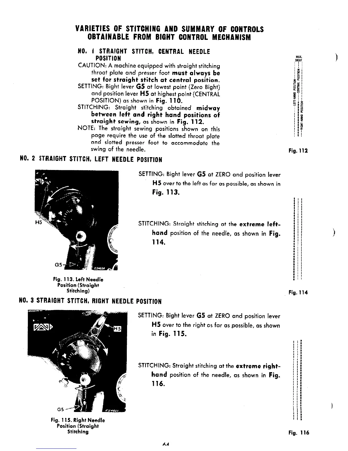 Singer 306 - VARIETIES OF STITCHING AND SUMMARY OF CONTROLS OBTAINABLE FROM BIGHT CONTROL MECHANISM; Straight Stitch Settings