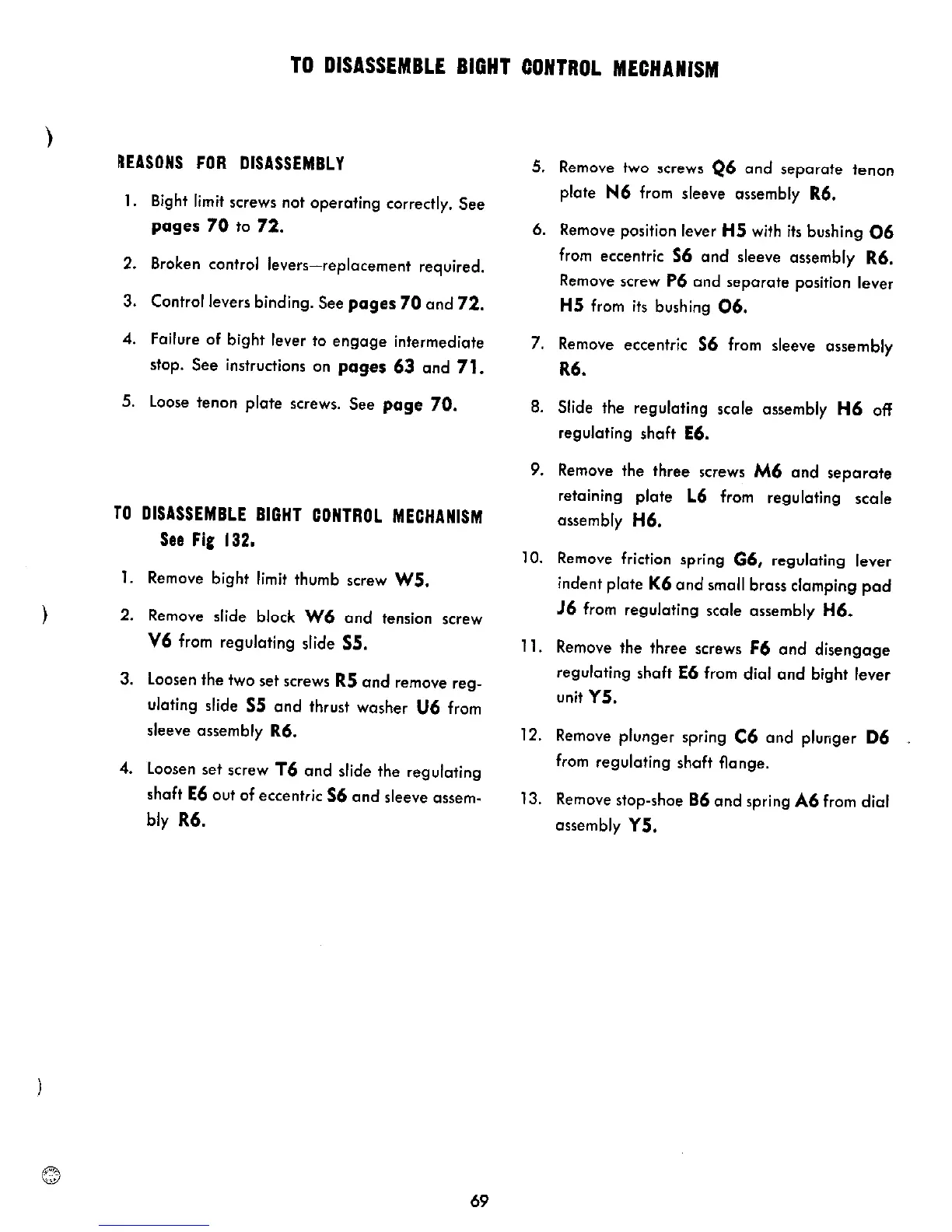 Singer 306 - To Disassemble Bight Control Mechanism