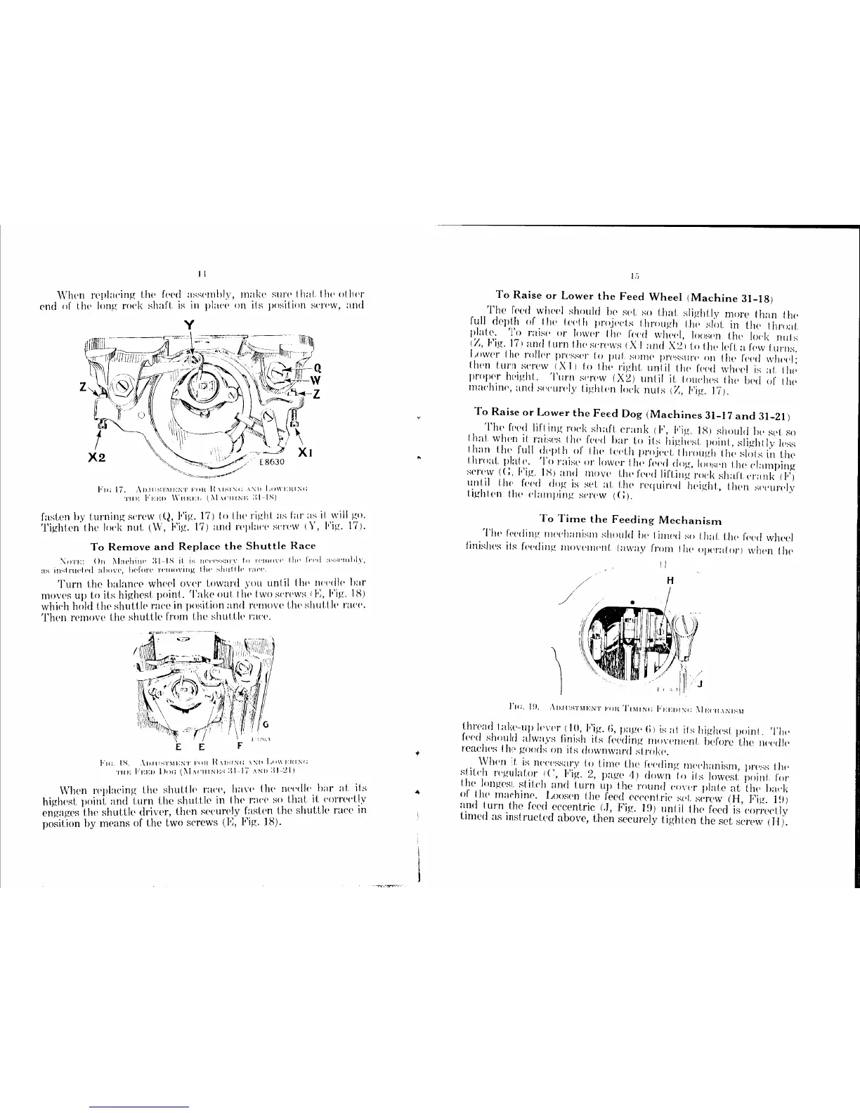 Singer 31-17 - To Remove and Replace the Shuttle Race; To Raise or Lower the Feed Wheel; To Raise or Lower the Feed Dog; To Time the Feeding Mechanism