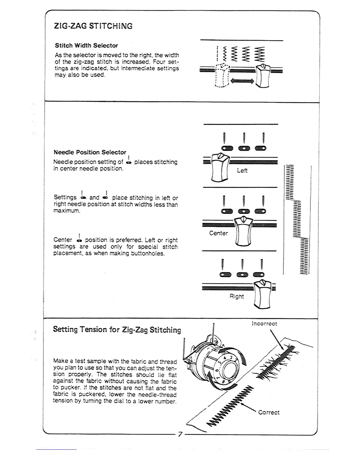 Singer 3102 - Zig-Zag Stitching; Zig-Zag Stitch Width Control; Zig-Zag Needle Position; Zig-Zag Tension Setting