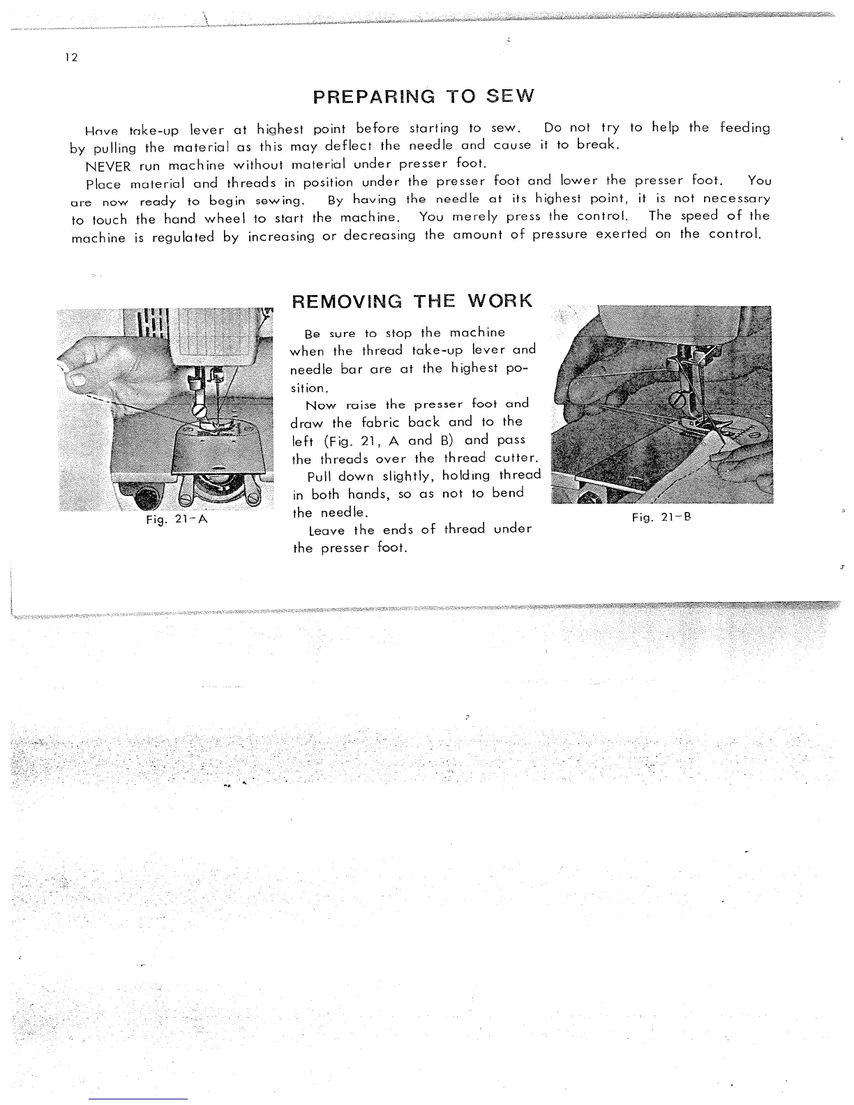 Singer 311 - Preparing to Sew; Removing the Work