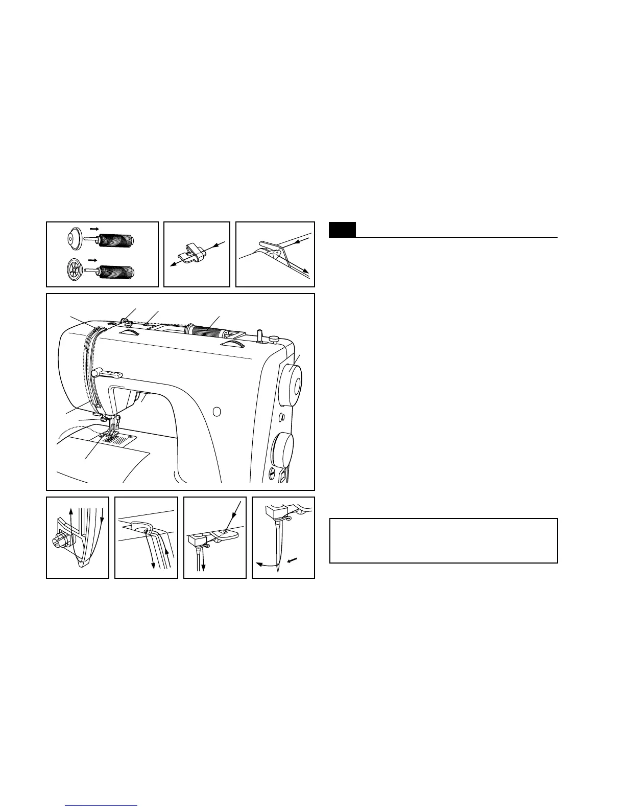 - Pass thread behind the flat, horizontal thread guide. (8)