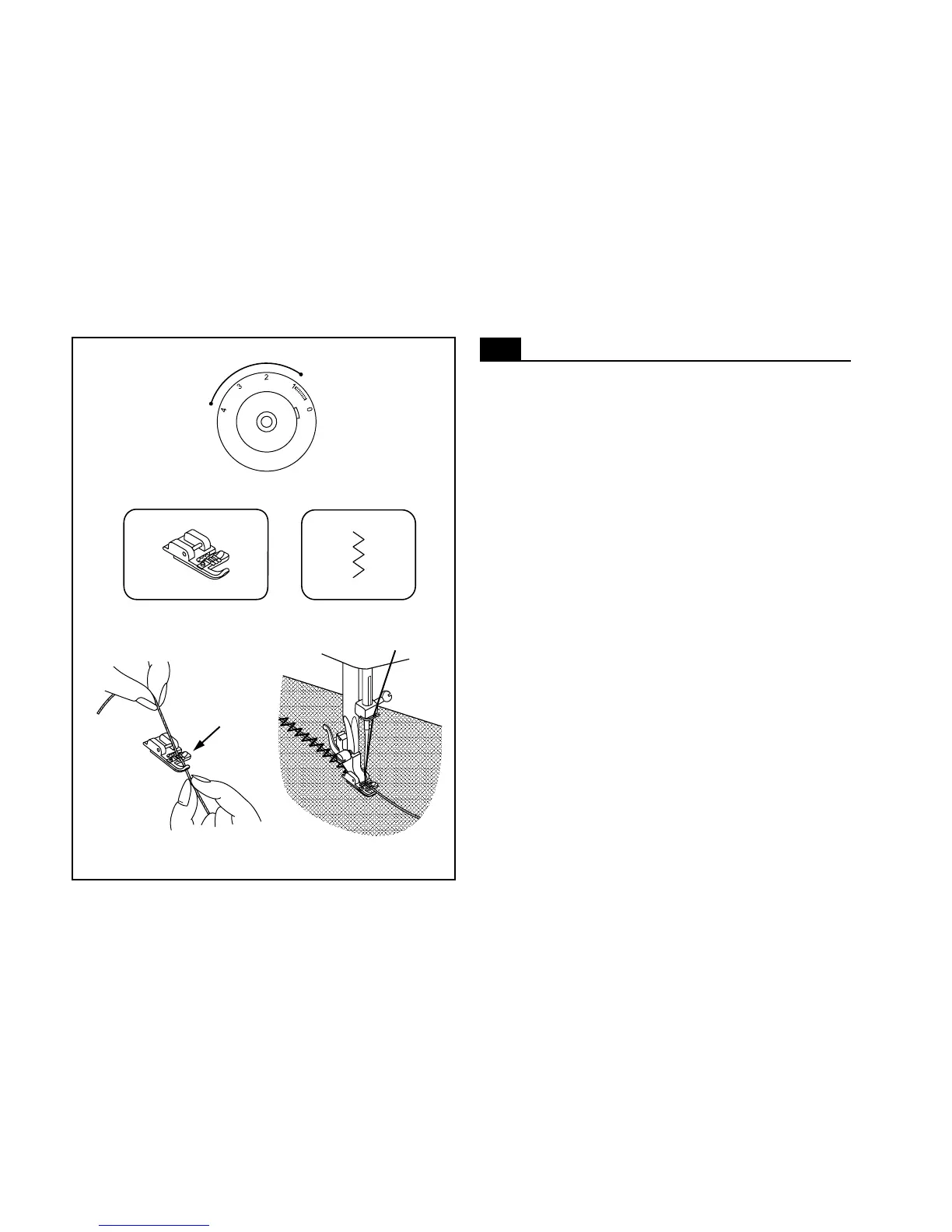 three cords can be sewn on. The stitch width is adjusted