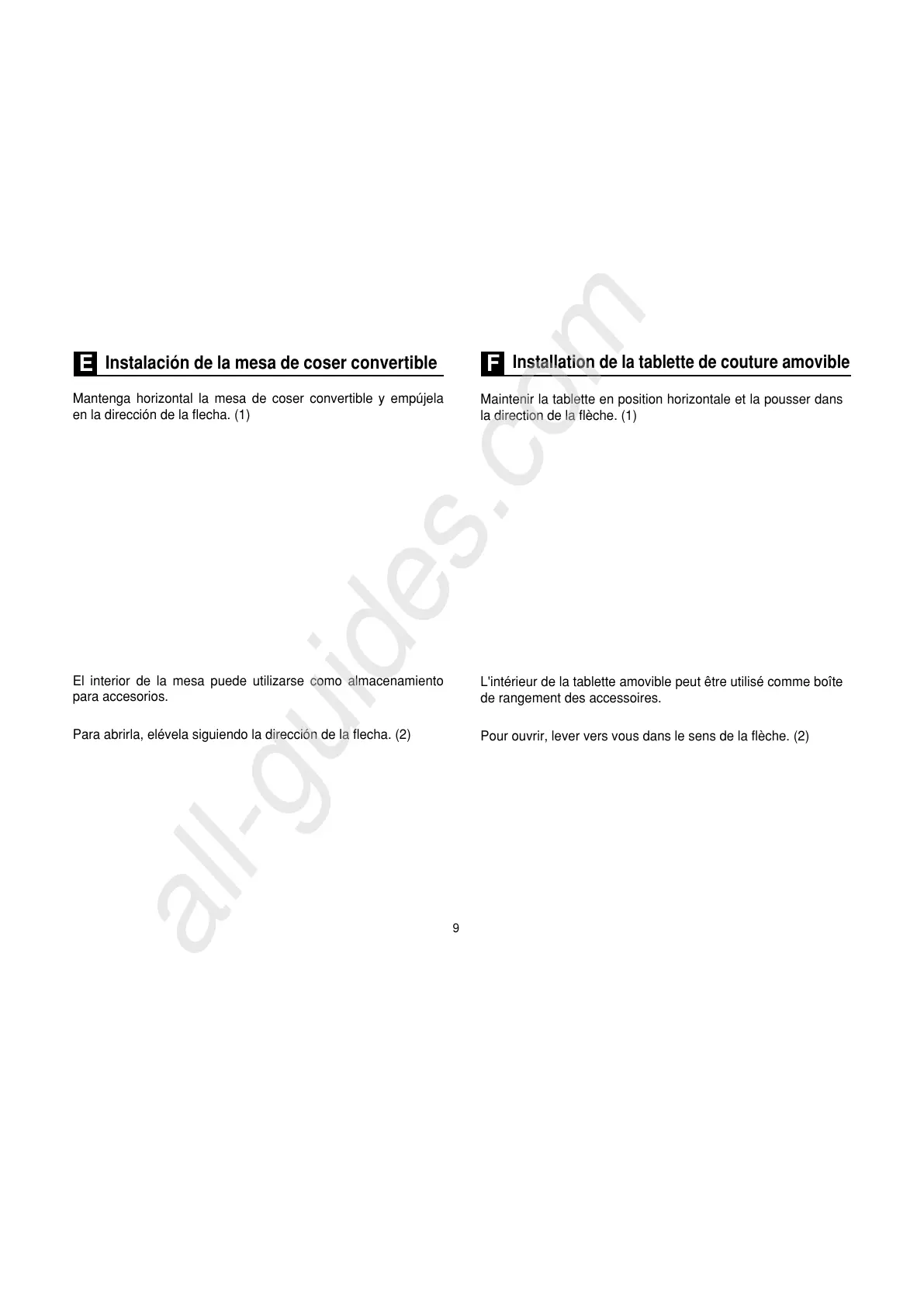 Singer 3116 - Instalación de la Mesa de Coser Convertible; Installation de la Tablette de Couture Amovible