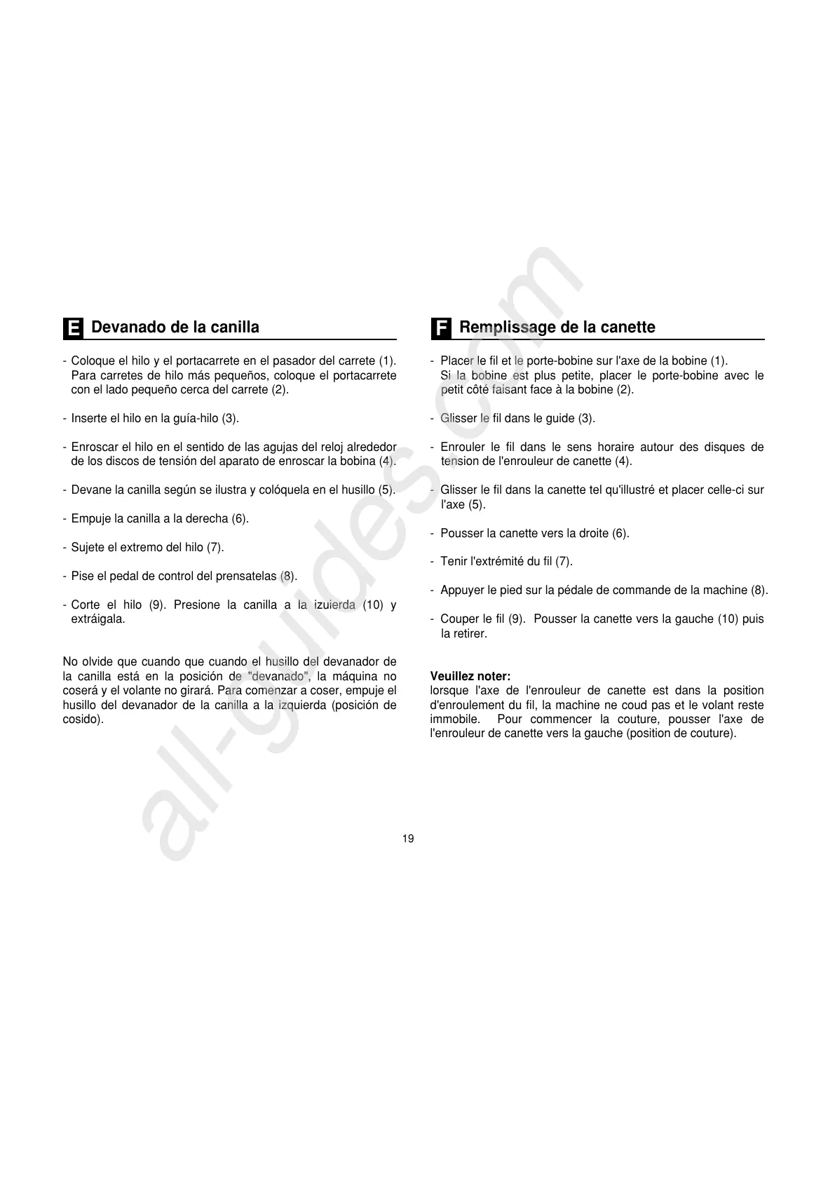 Singer 3116 - Devanado de la Canilla; Remplissage de la Canette