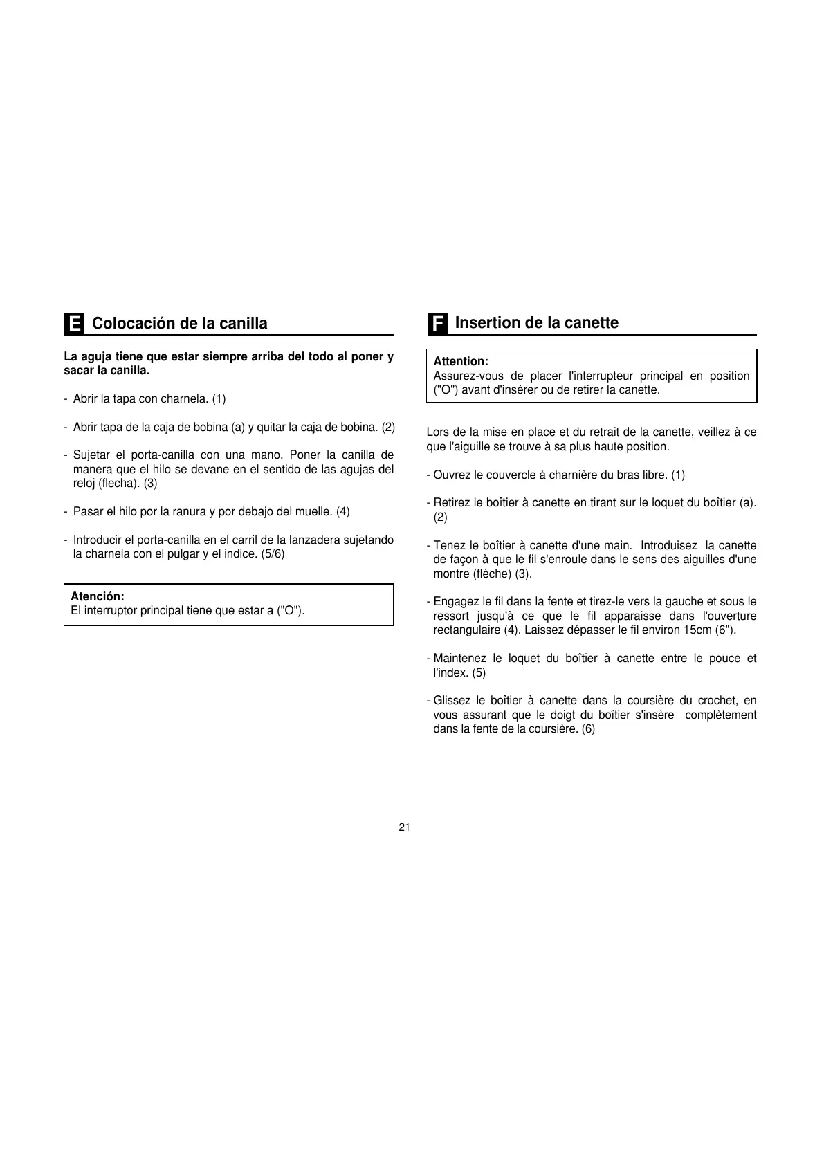 Singer 3116 - Colocación de la Canilla; Insertion de la Canette