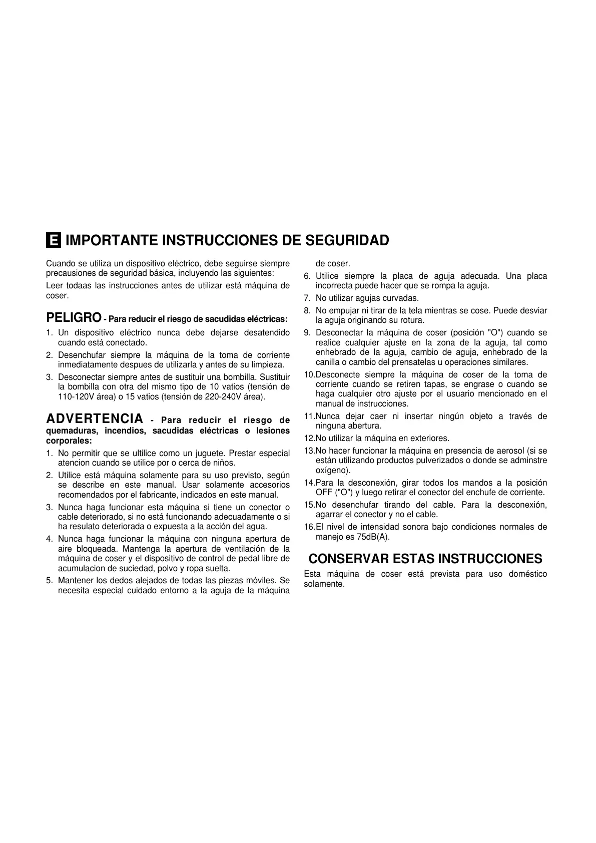 IMPORTANTE INSTRUCCIONES DE SEGURIDAD